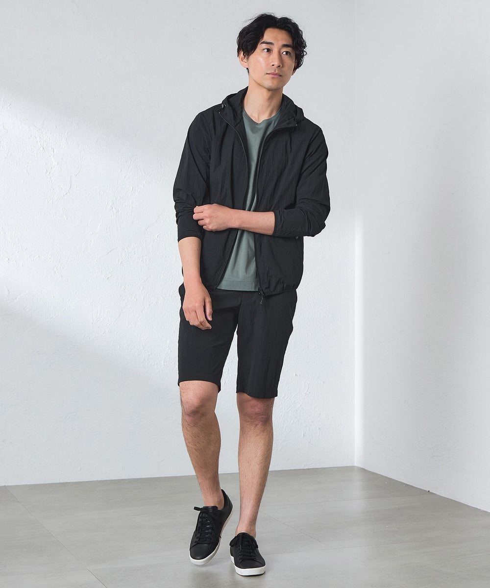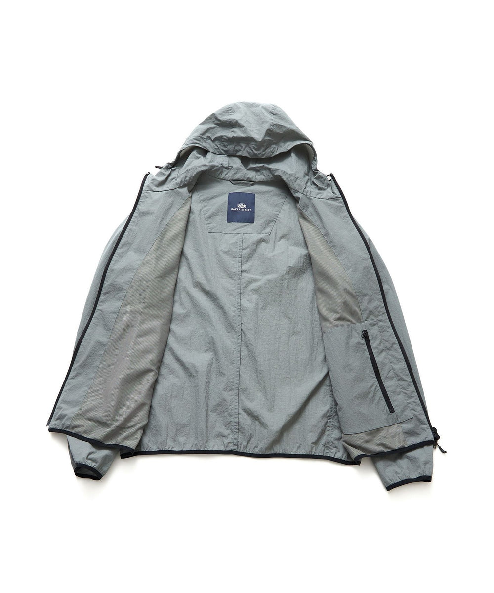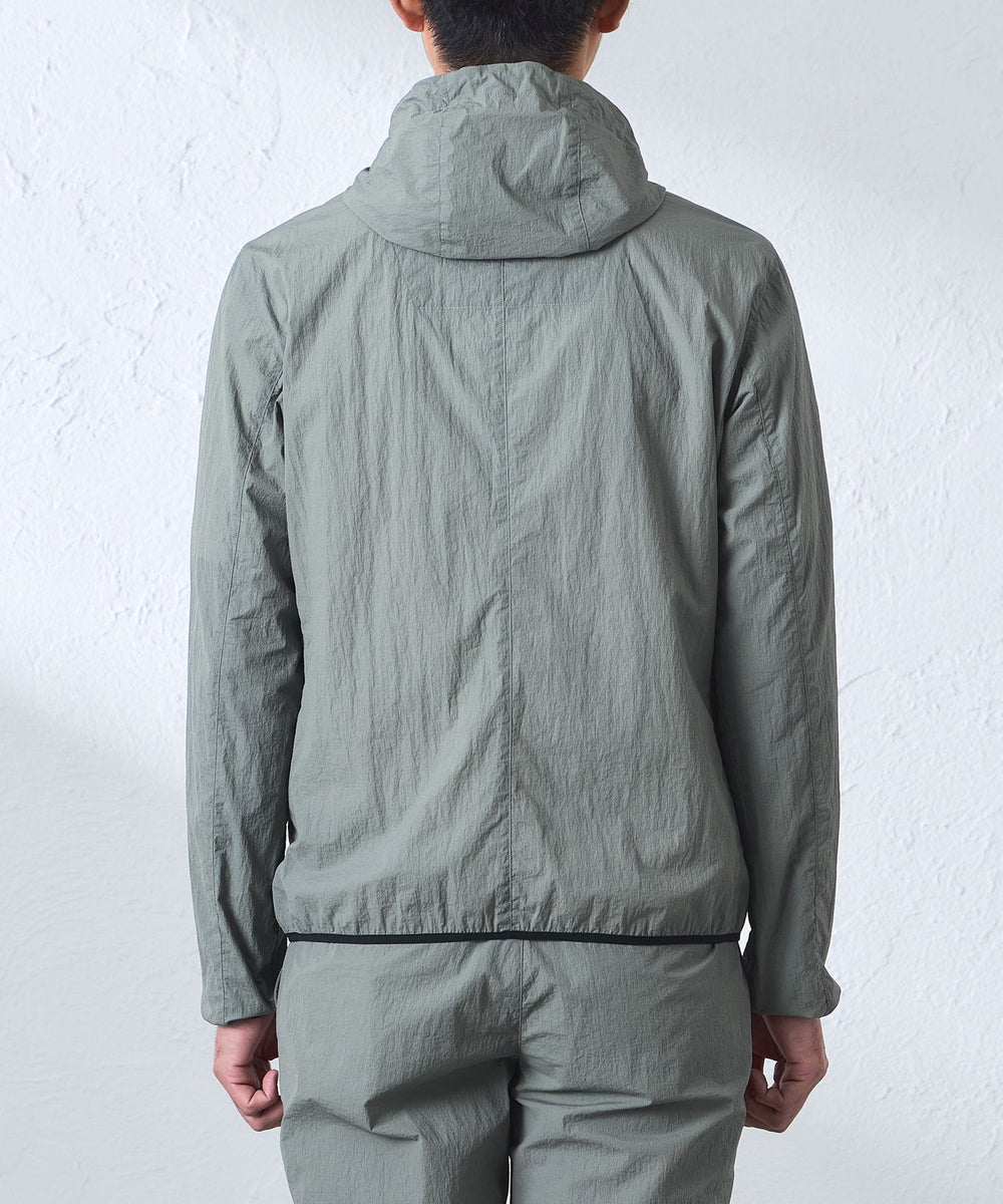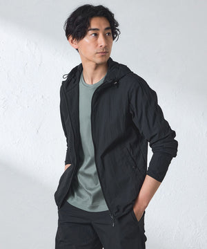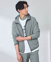 【ウォッシャブル】コットンブレンドクリスピーナイロンフーデットブルゾン