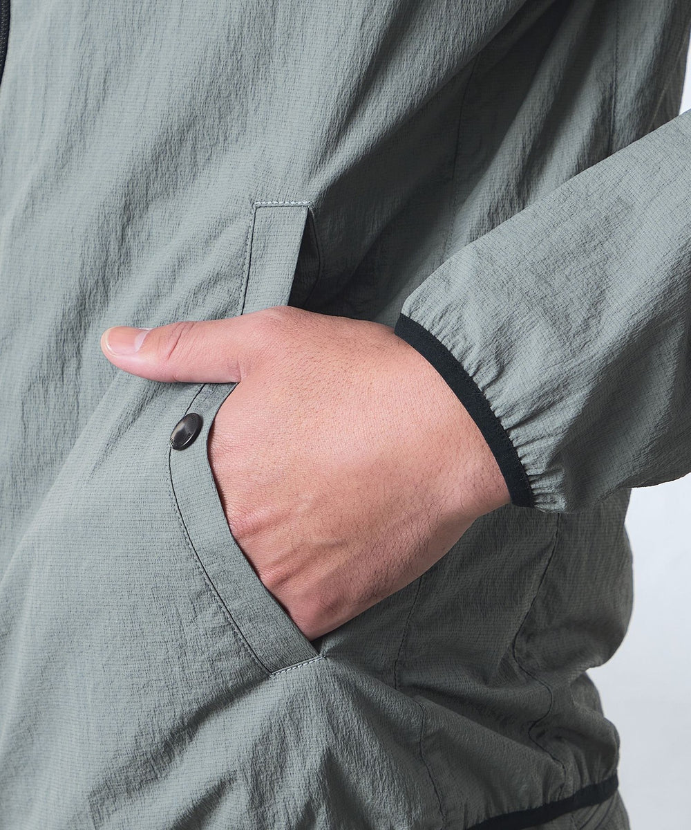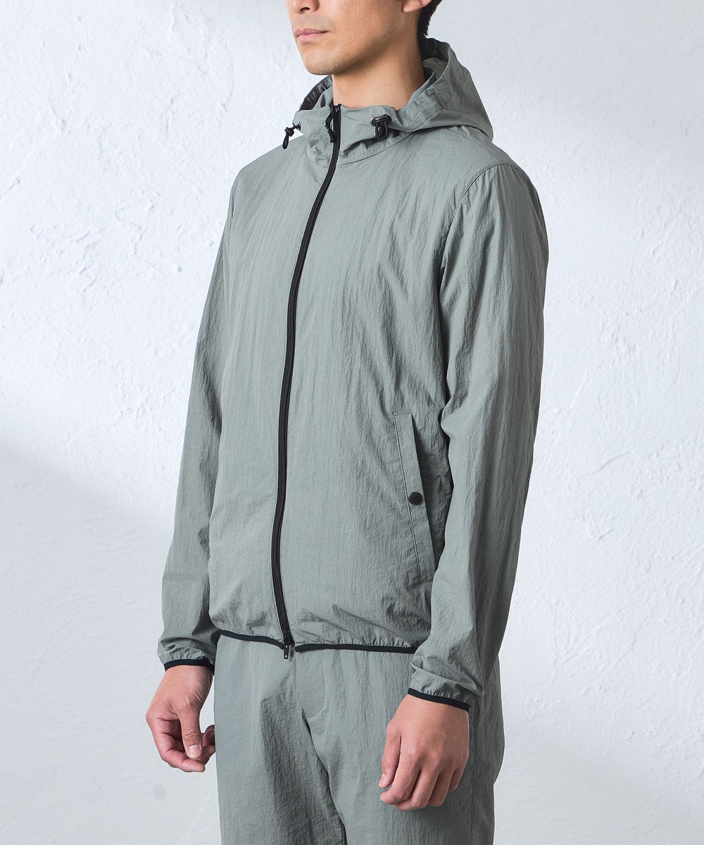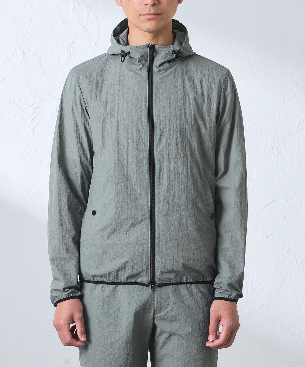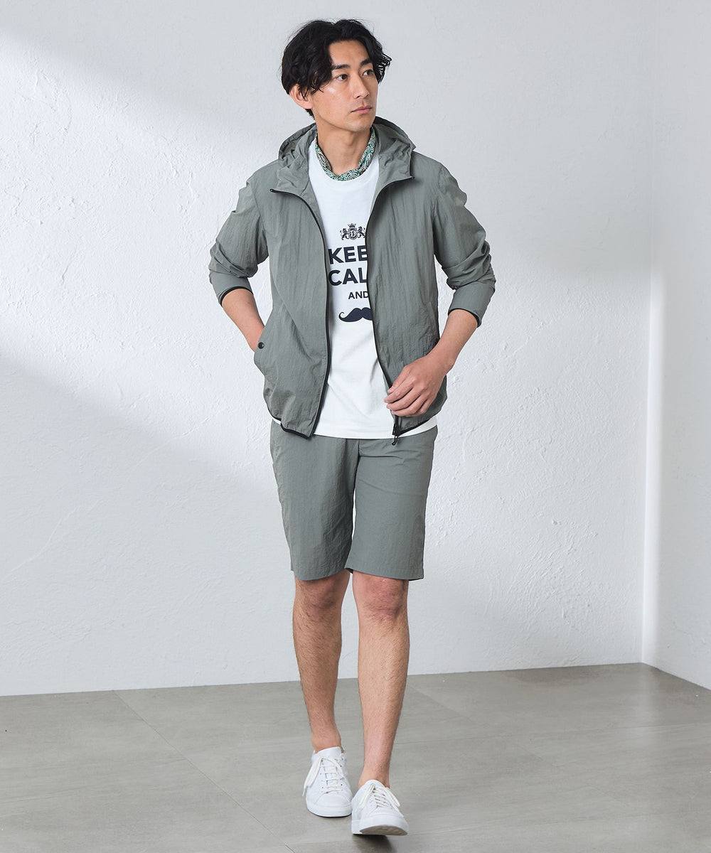 【ウォッシャブル】コットンブレンドクリスピーナイロンフーデットブルゾン