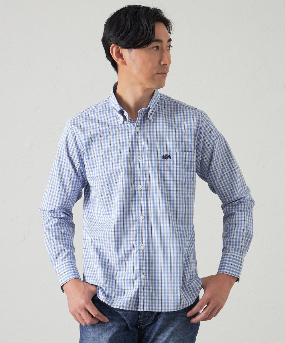 コットンポリエステルチェックシャツ