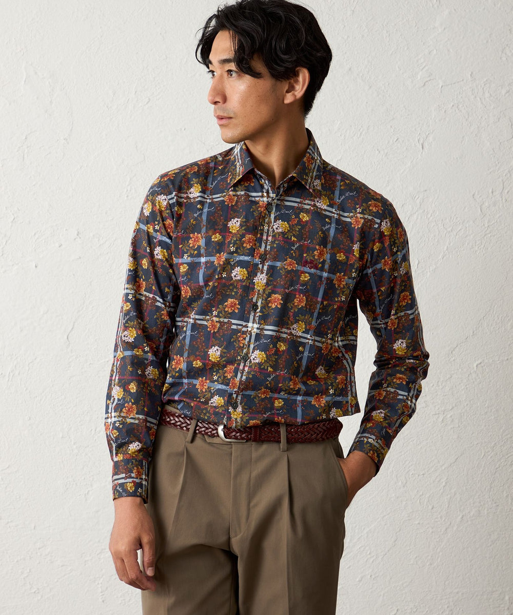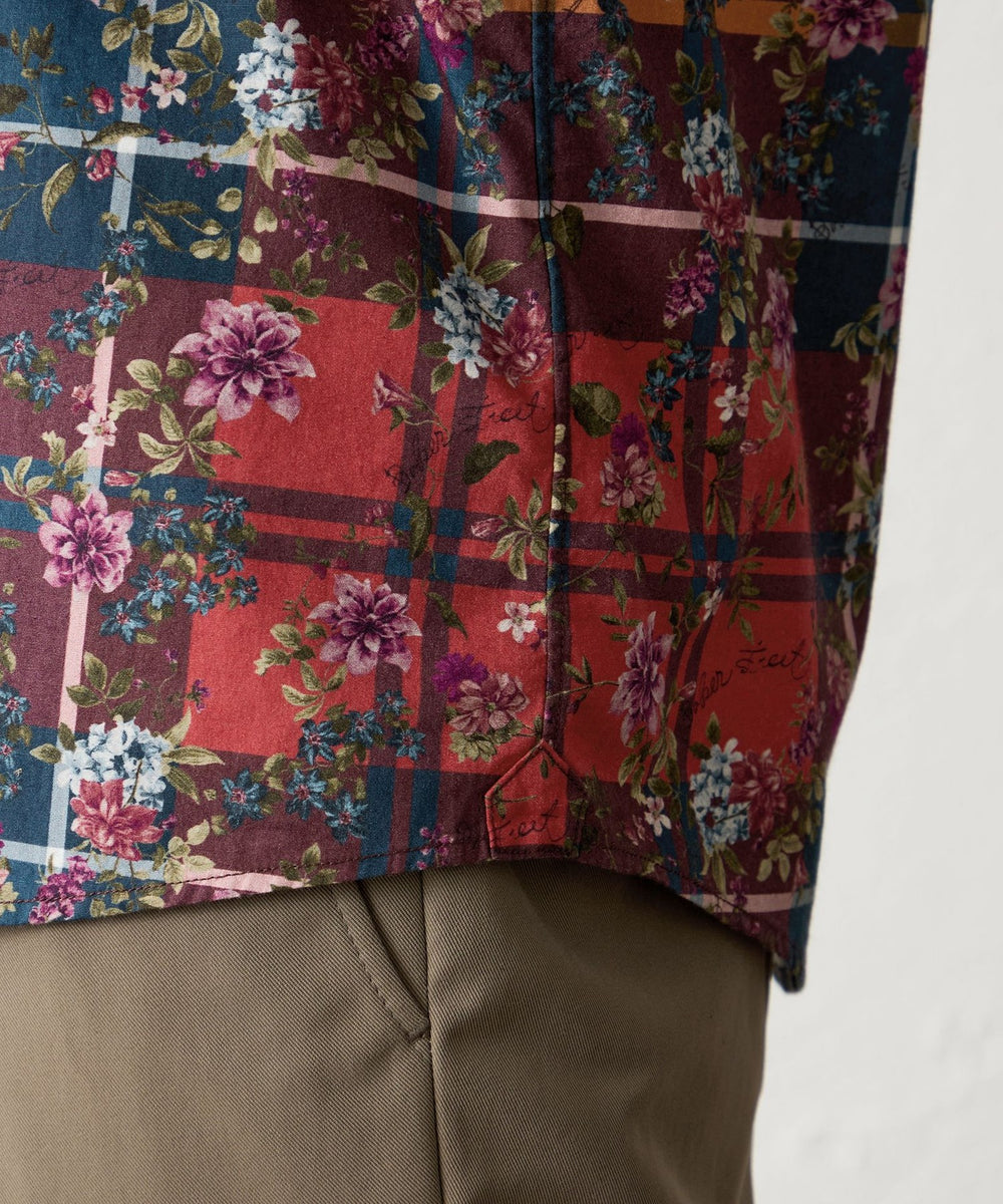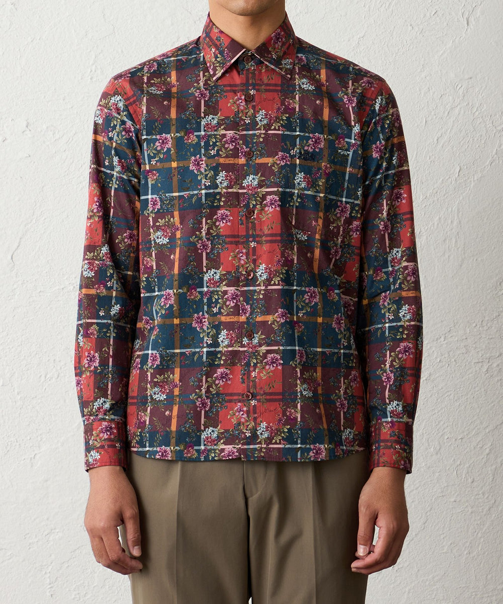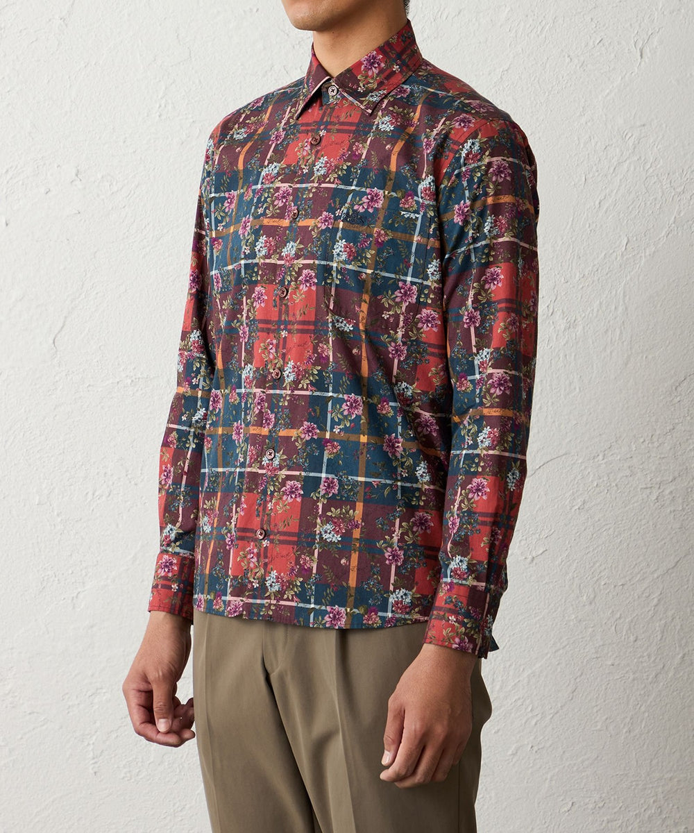 タータン×フラワープリントシャツ