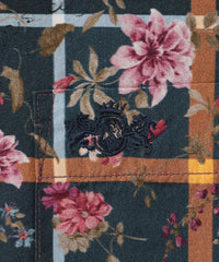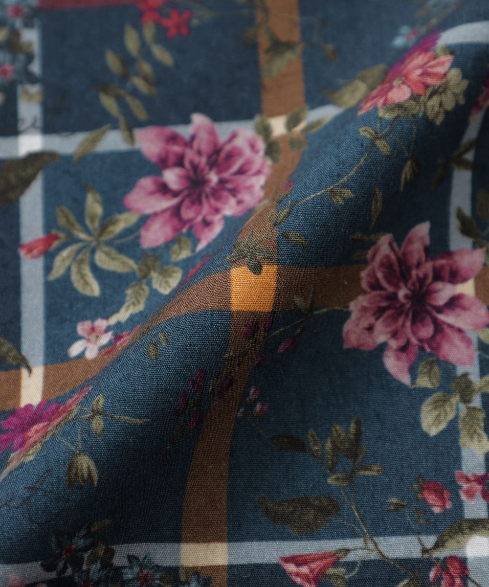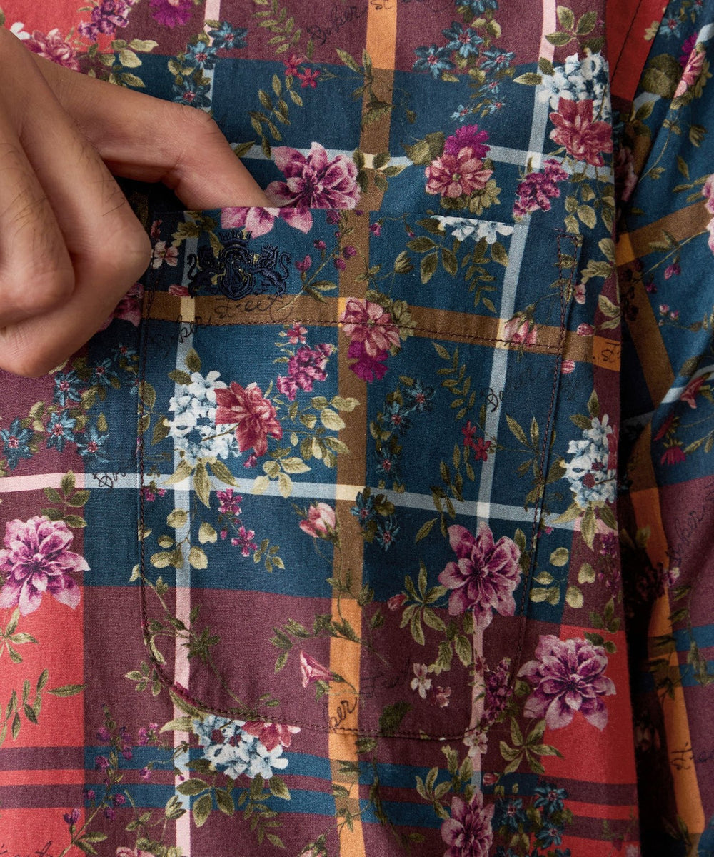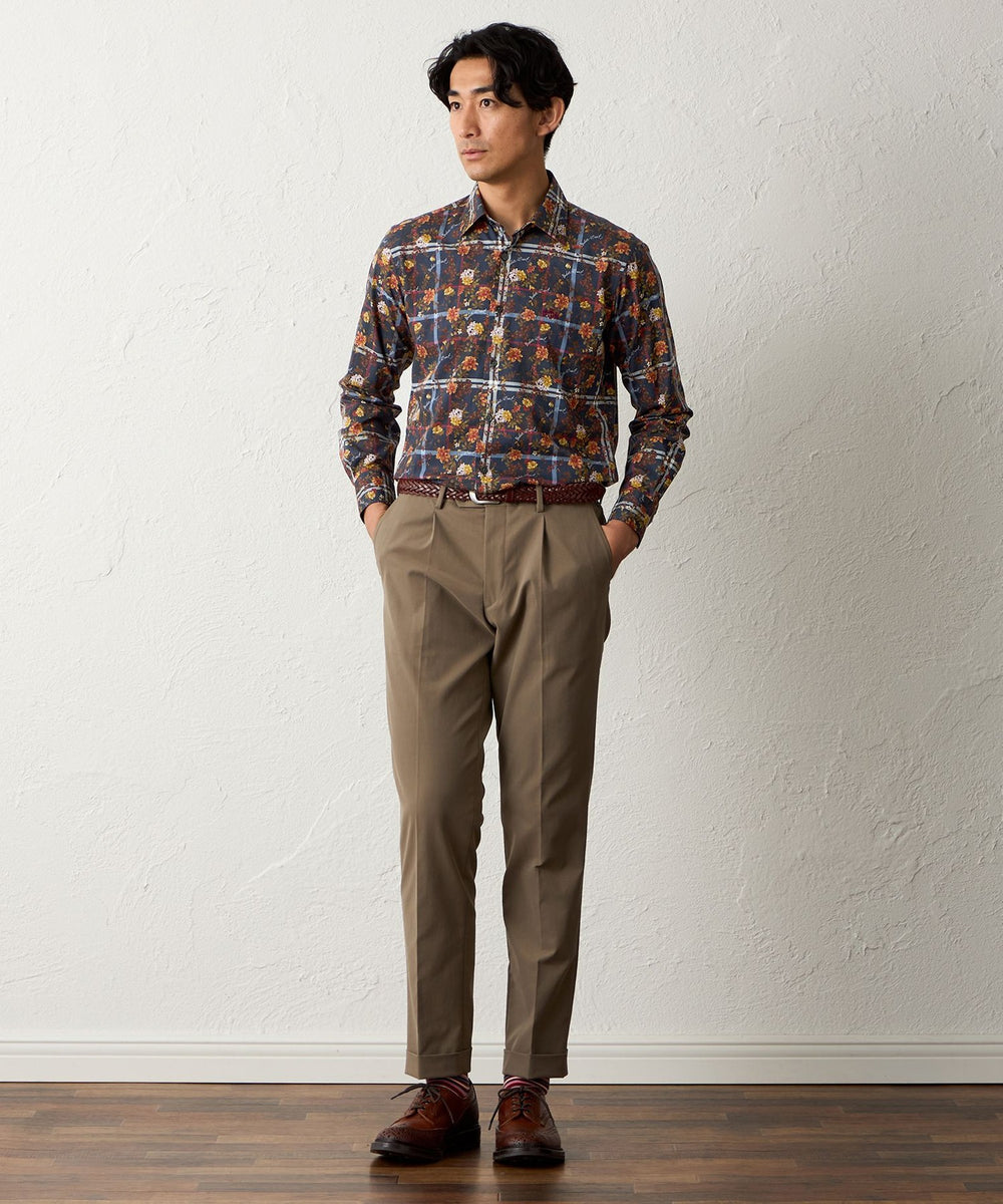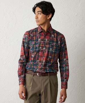 タータン×フラワープリントシャツ