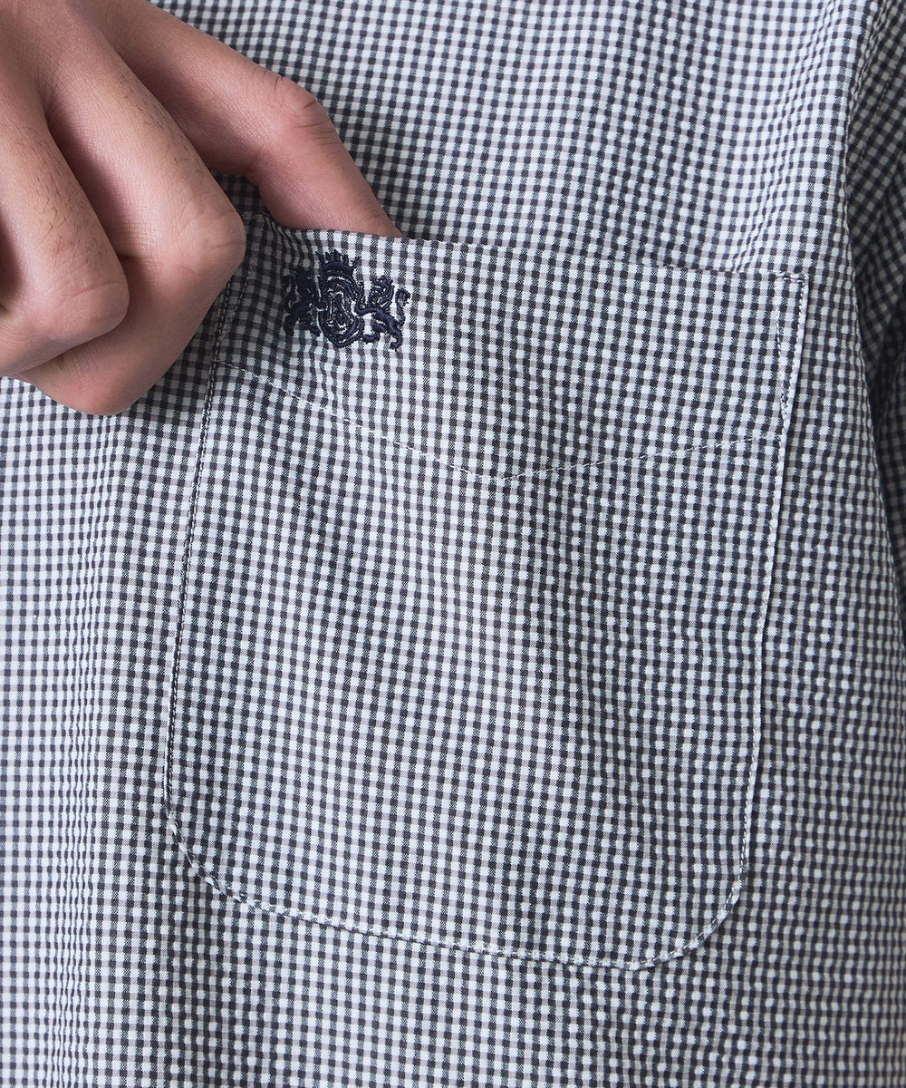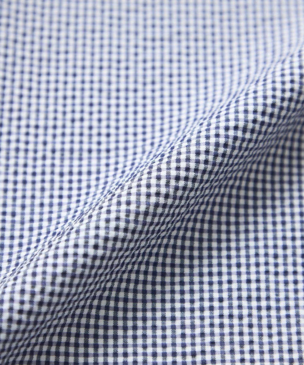 トラッドスタイルの定番であるミニギンガムチェック柄のサッカーシャツに仕上げました。
