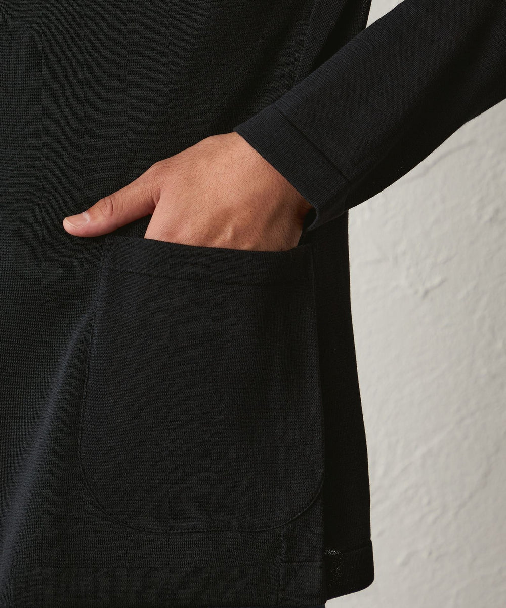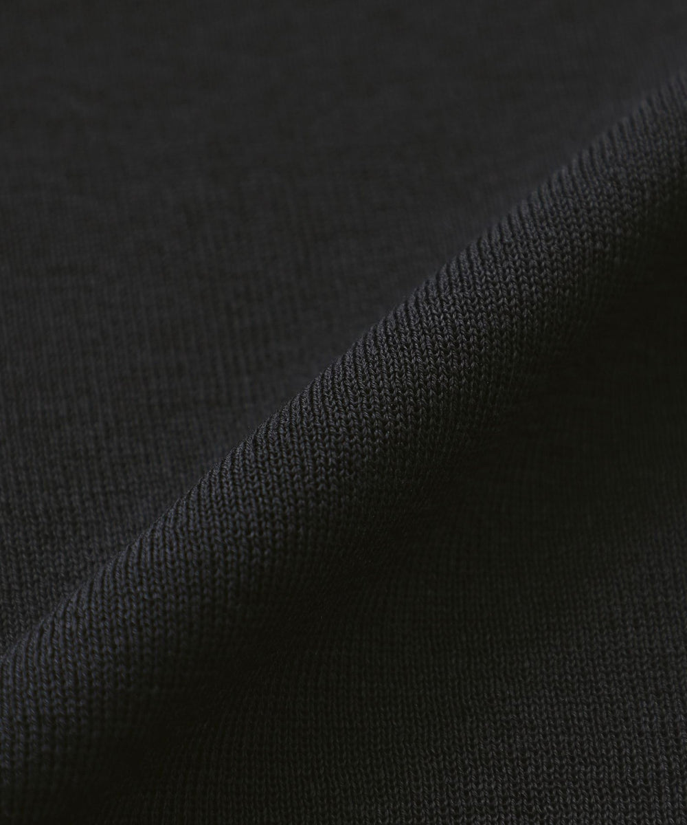 前身頃は薄手でありながら、しっかりとした総針編みに仕上げ、