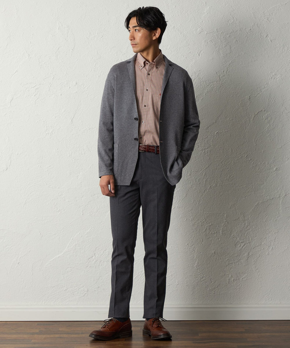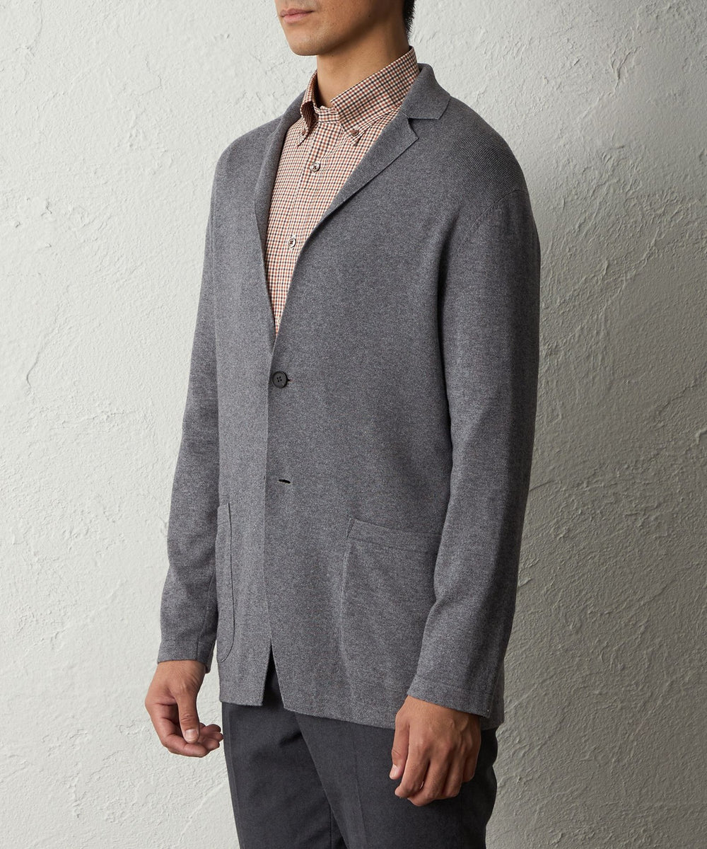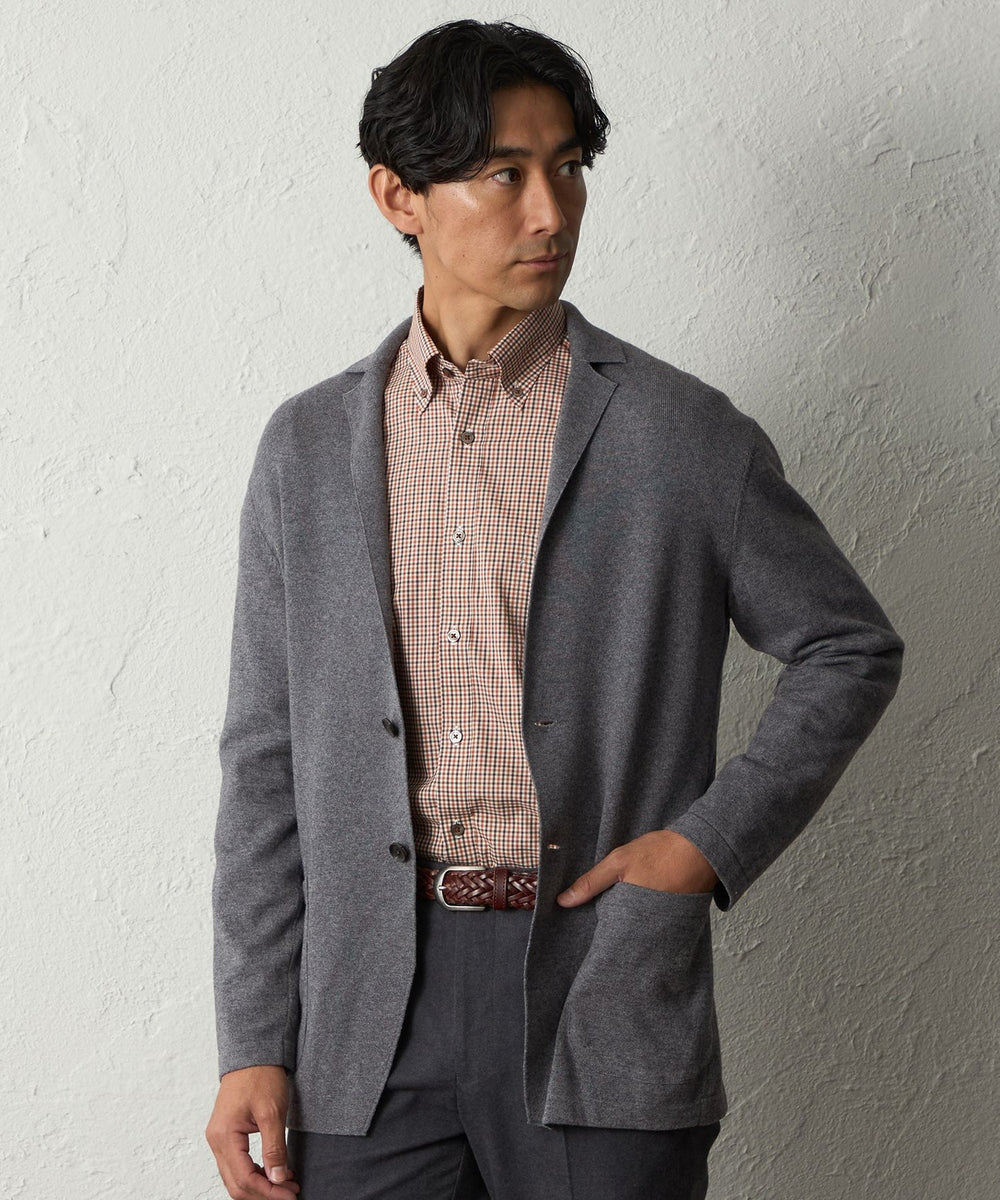 ニットの柔らかさとジャケットの端正さを両立させた秋冬に活躍するデザインです。
