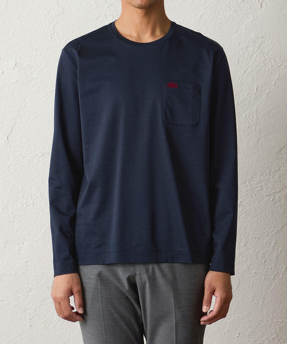 柔らかさの中にも適度なハリ感があり、着用時に綺麗なシルエットを生み出すロングTシャツです。