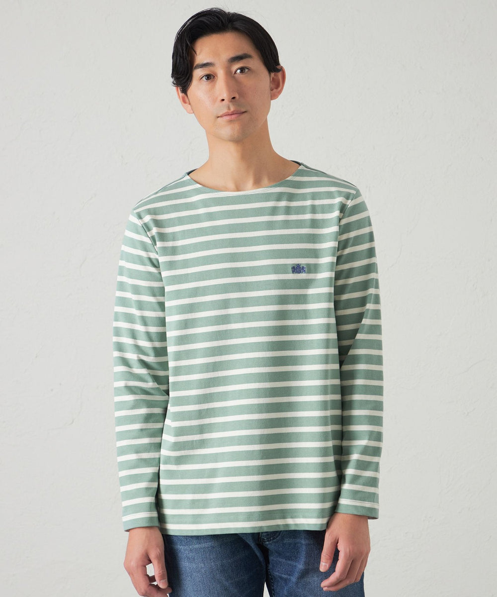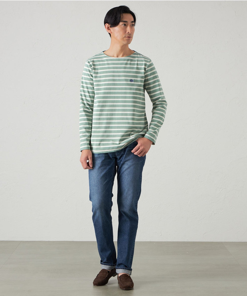 太番手を用いたコットン天竺ボーダー素材を使用。