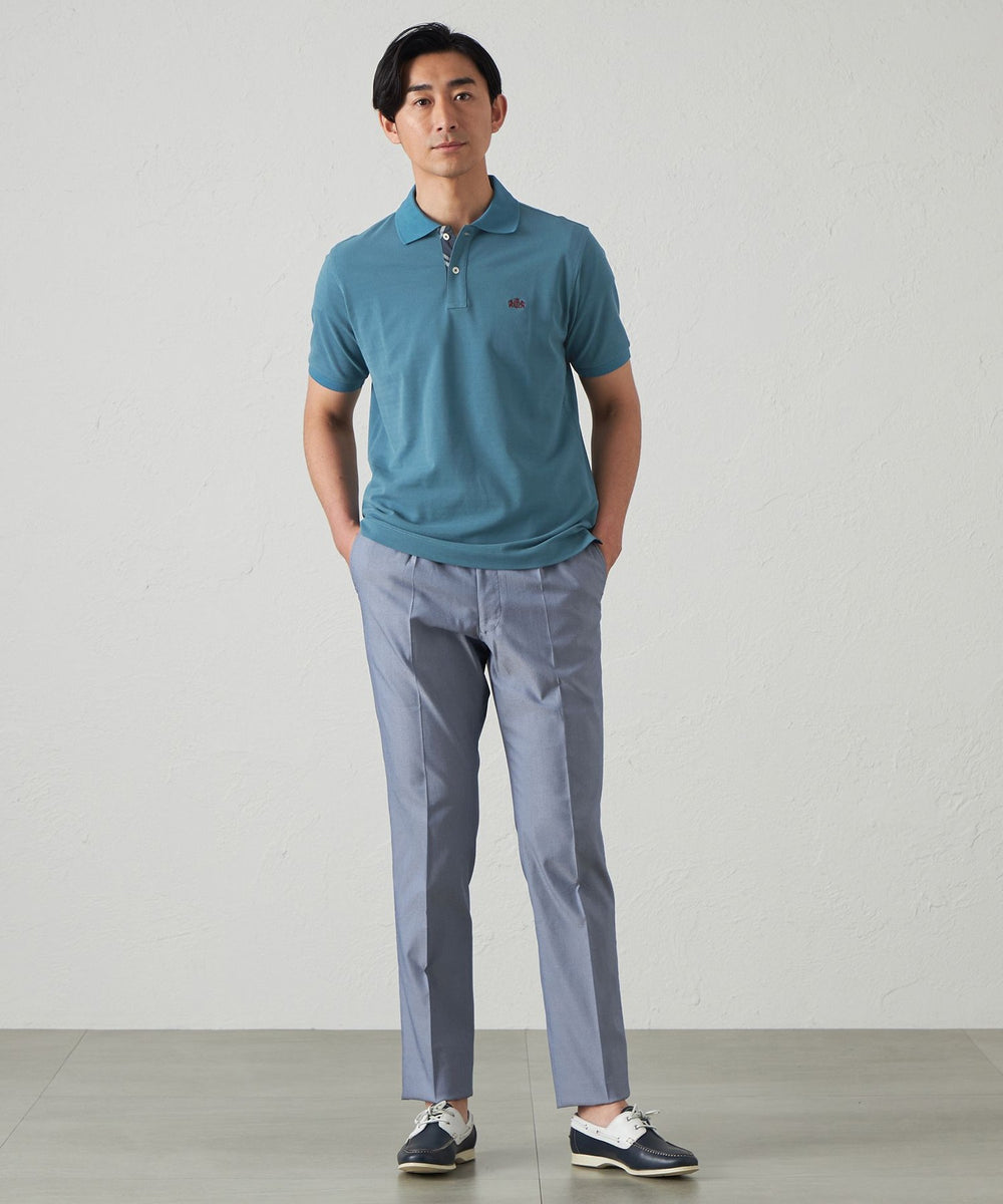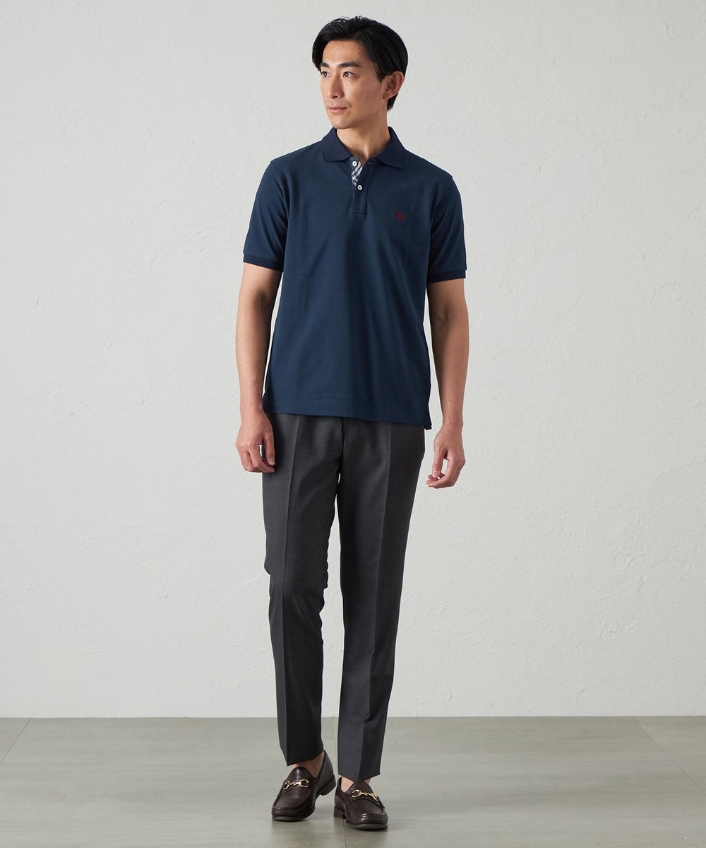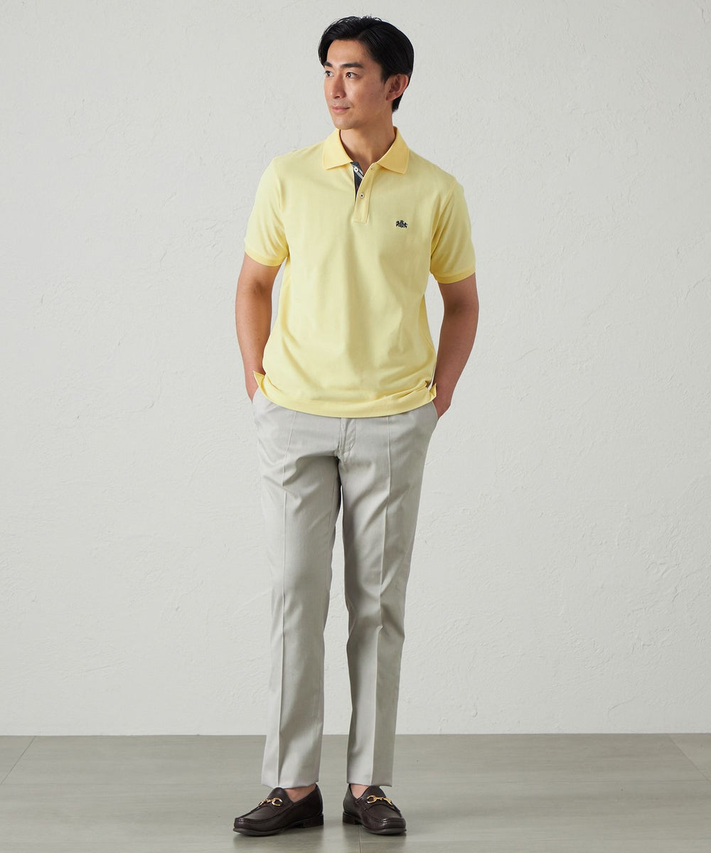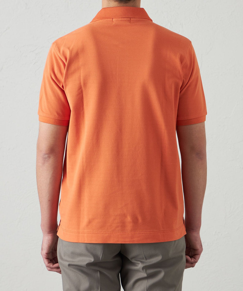 シルケット加工を施すことで光沢感を持たせ上品に仕上げたポロシャツです。衿は光沢のあるシルケット糸を使用し、一度水通しをして縮みを抑えてから縫製することで安定性を持たせています。