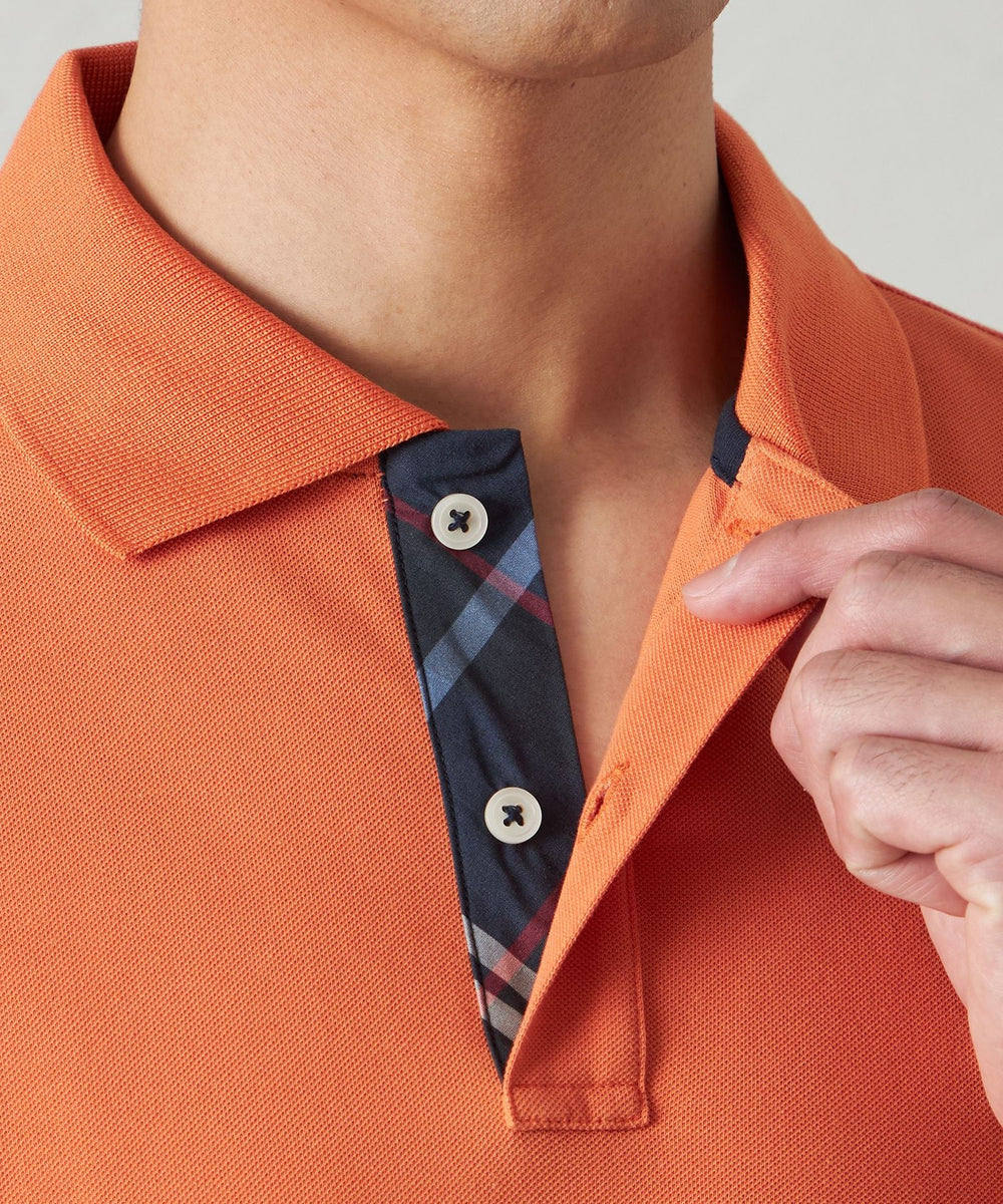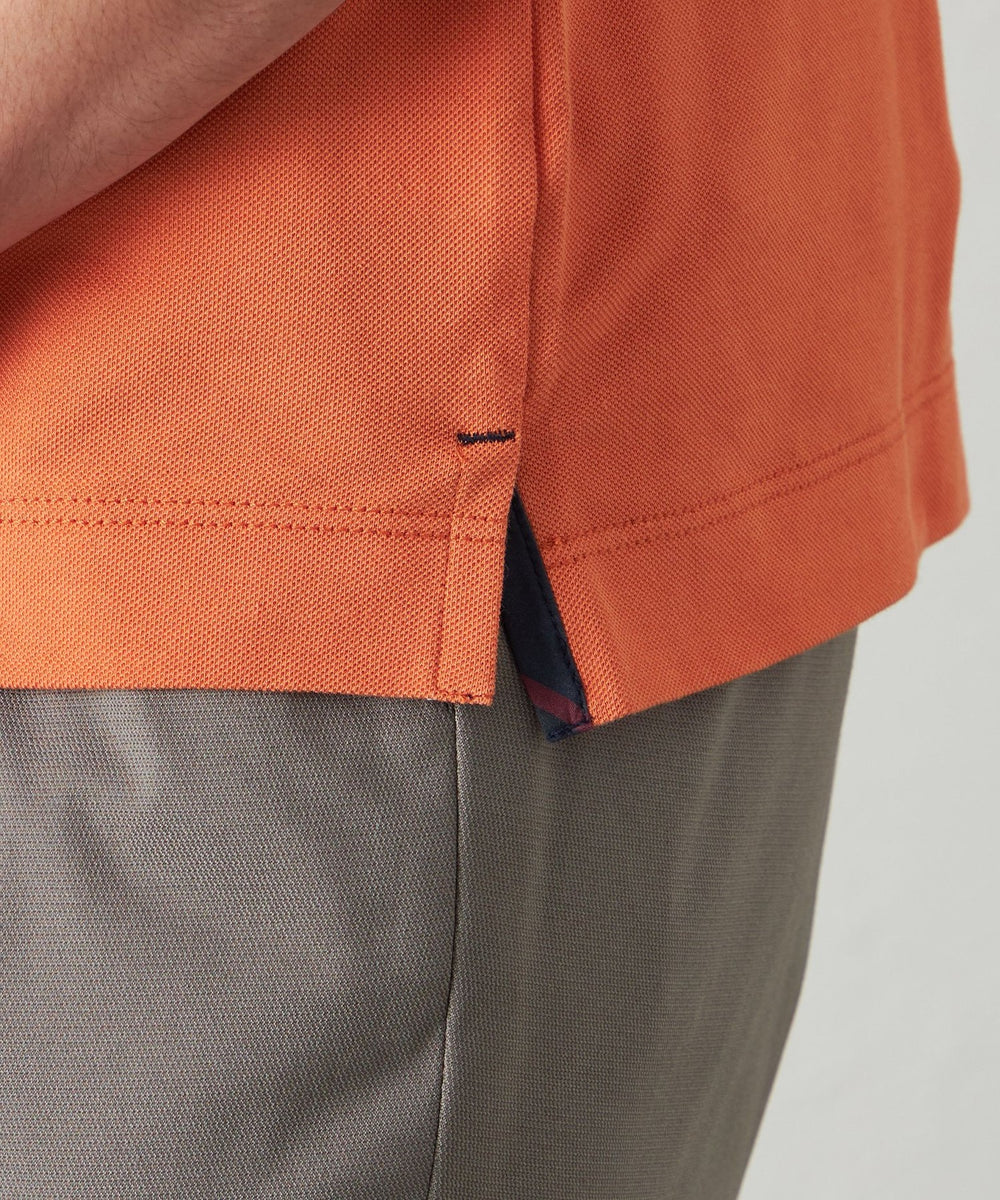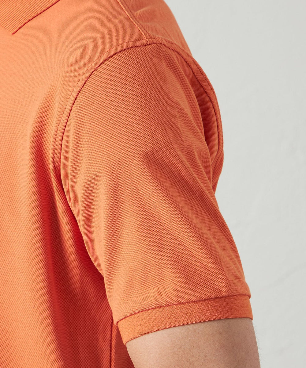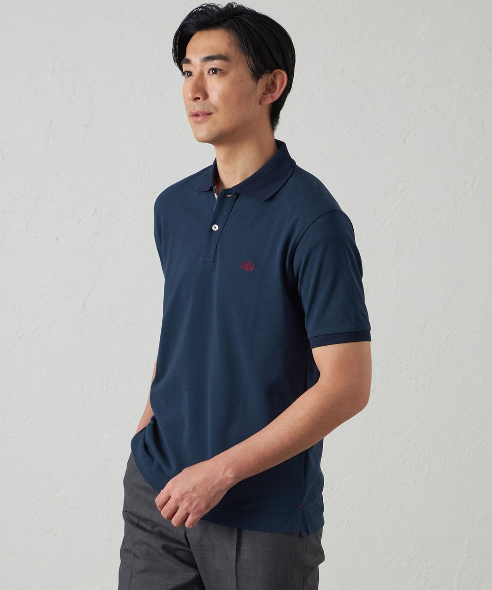 シルケット加工を施すことで光沢感を持たせ上品に仕上げたポロシャツです。衿は光沢のあるシルケット糸を使用し、一度水通しをして縮みを抑えてから縫製することで安定性を持たせています。