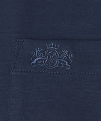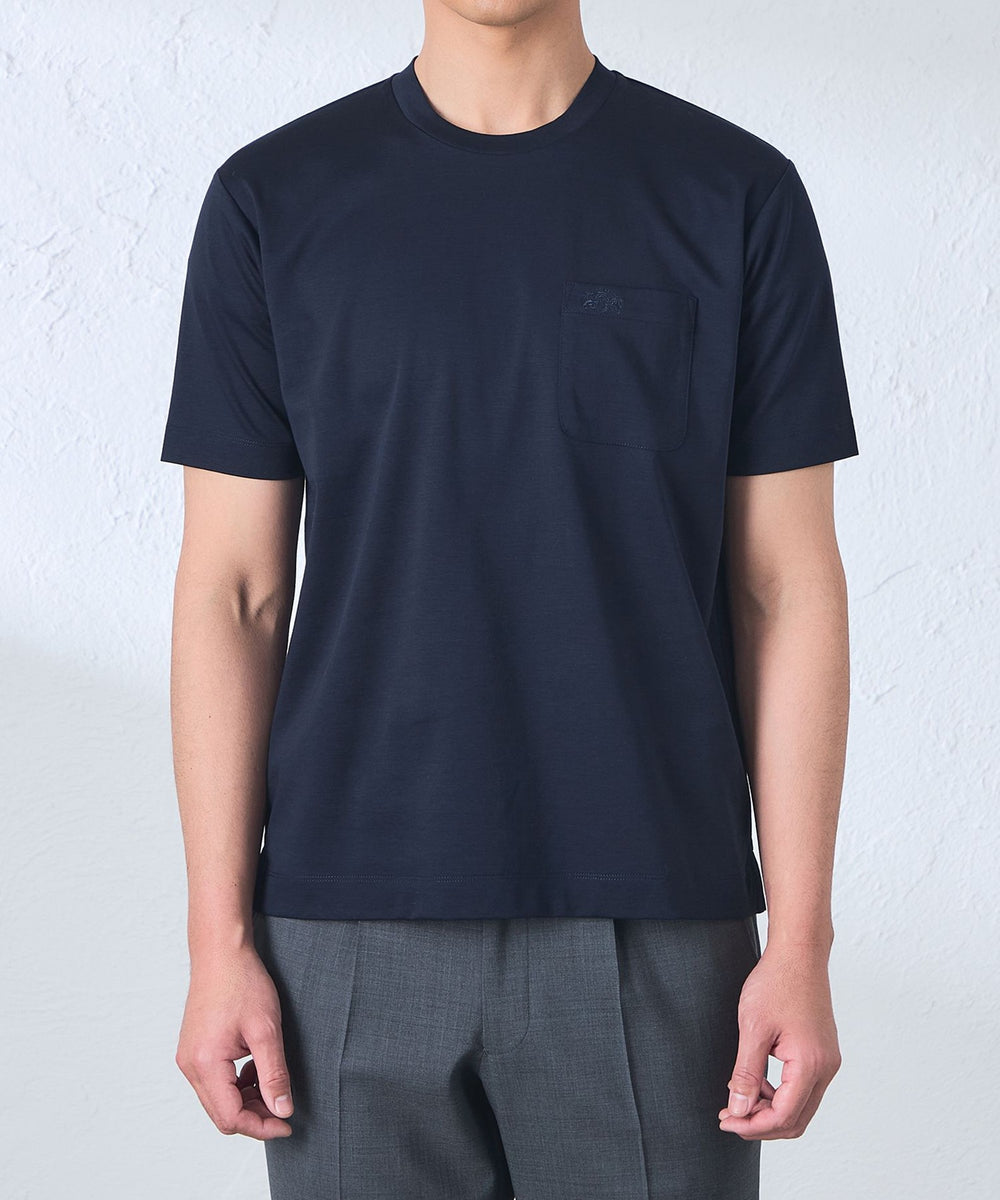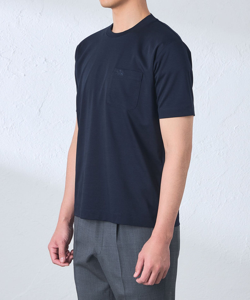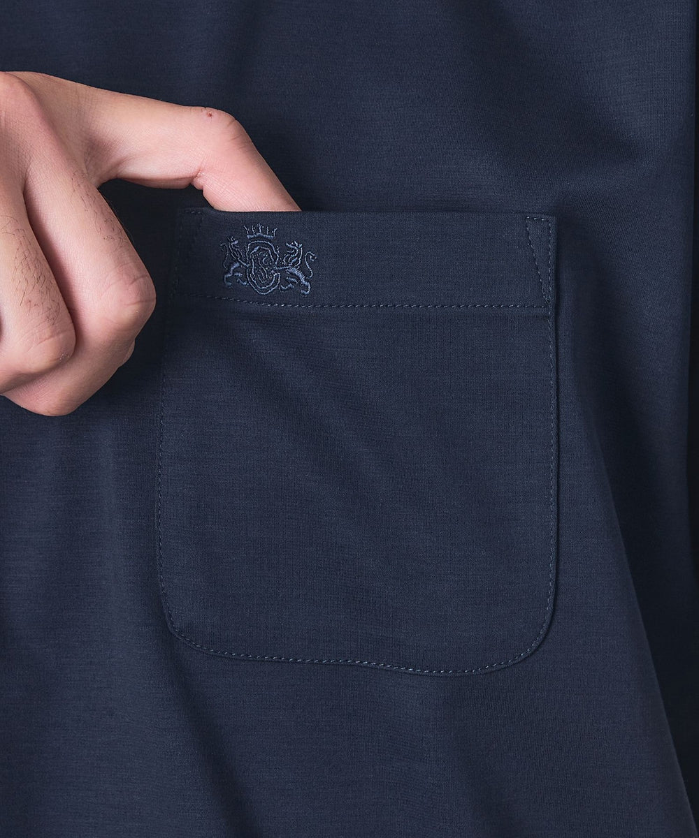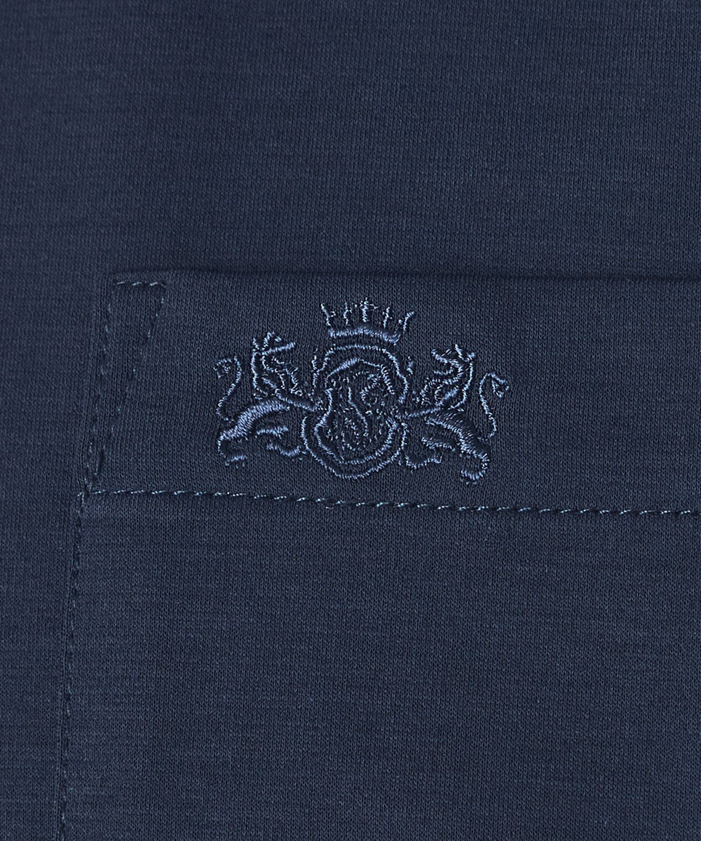 左胸ポケット口にはクレスト刺繍が入り、さりげないアクセントになっています。