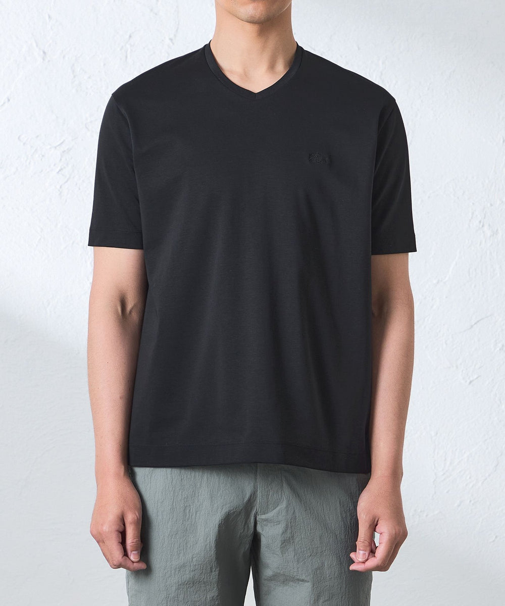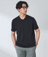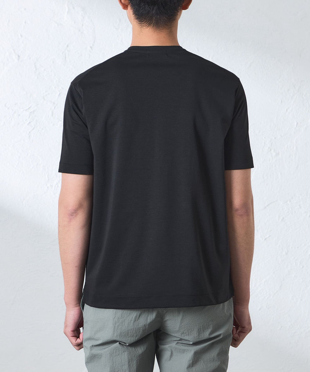 毛羽の少ない細番手の糸を使用し、40Gで編みたてる事で編み目の細かい綺麗な表面感が特徴です。