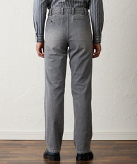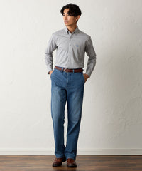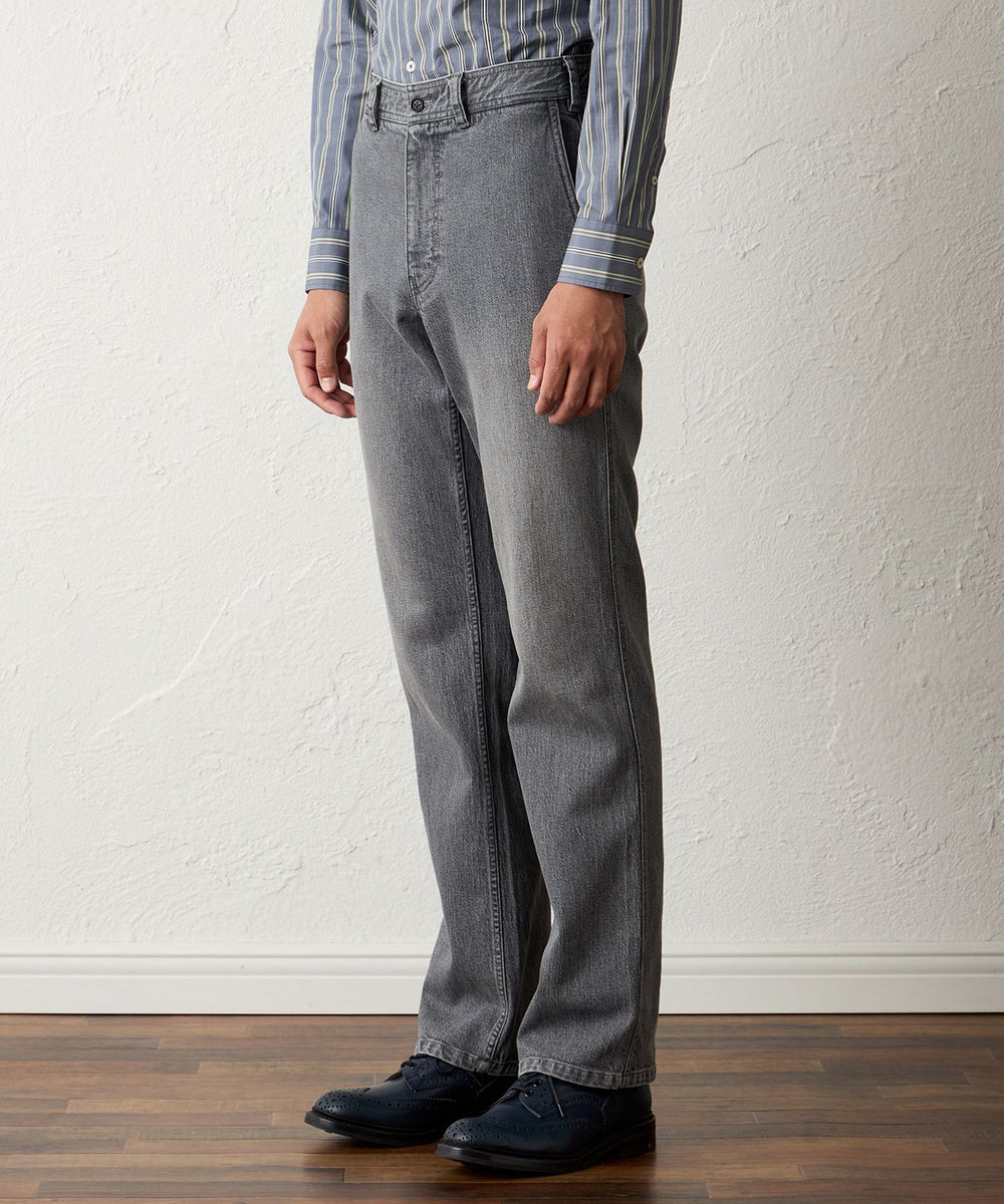 従来のデニムパンツとは異なり、スラックスのようなシルエットを取り入れています。
