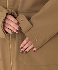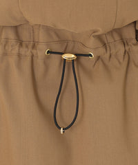 脇裾のストッパーのコードを絞ることでバルーンシルエットにも、Aラインにもシルエットの変化が可能です。