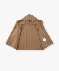 ゆったりとしたシルエットの一重仕立てのマウンテンパーカ。