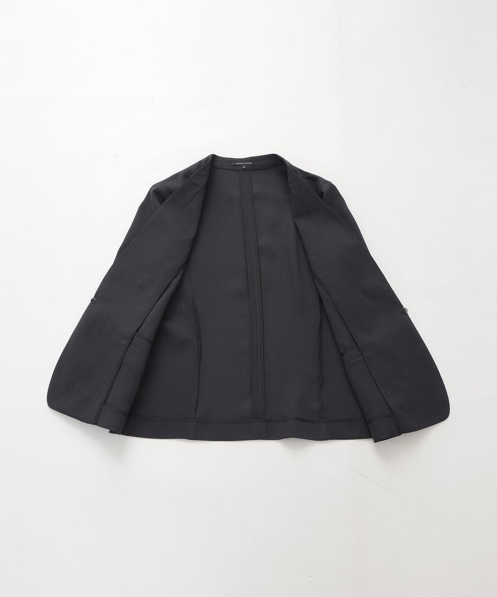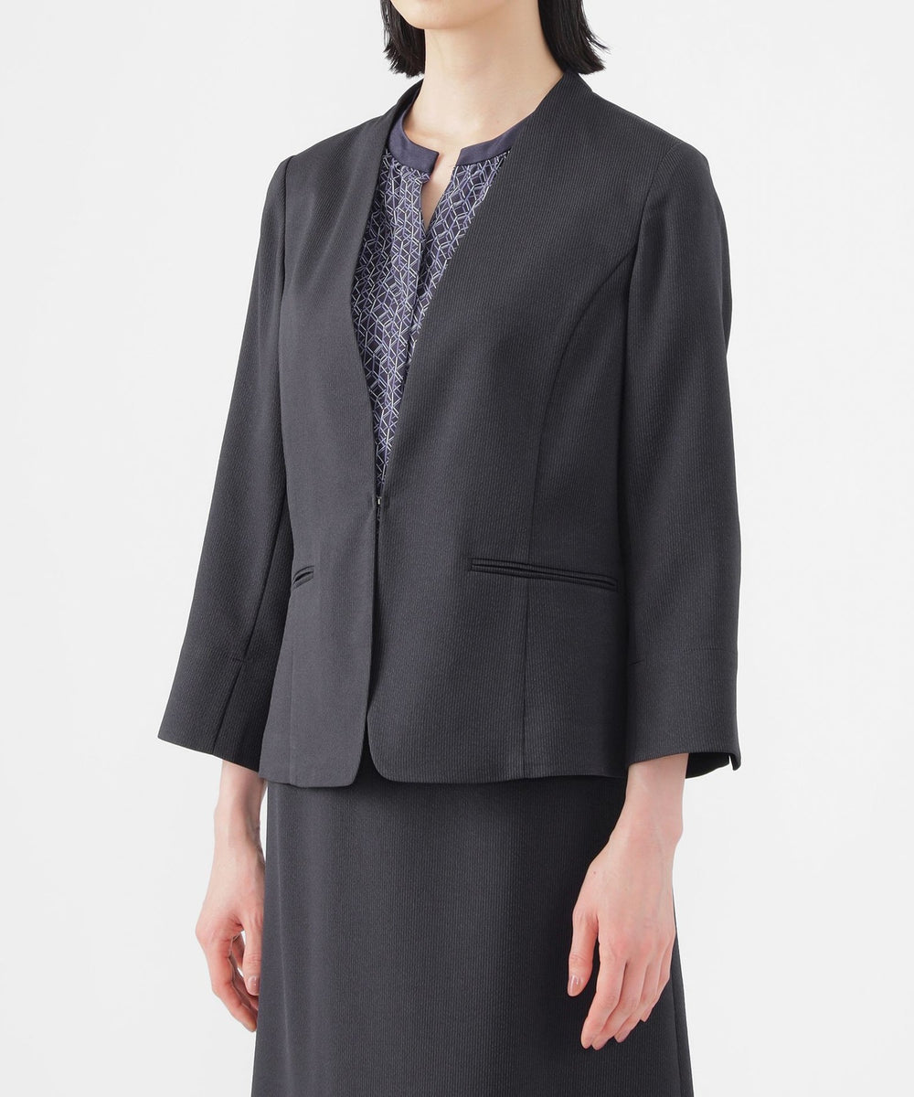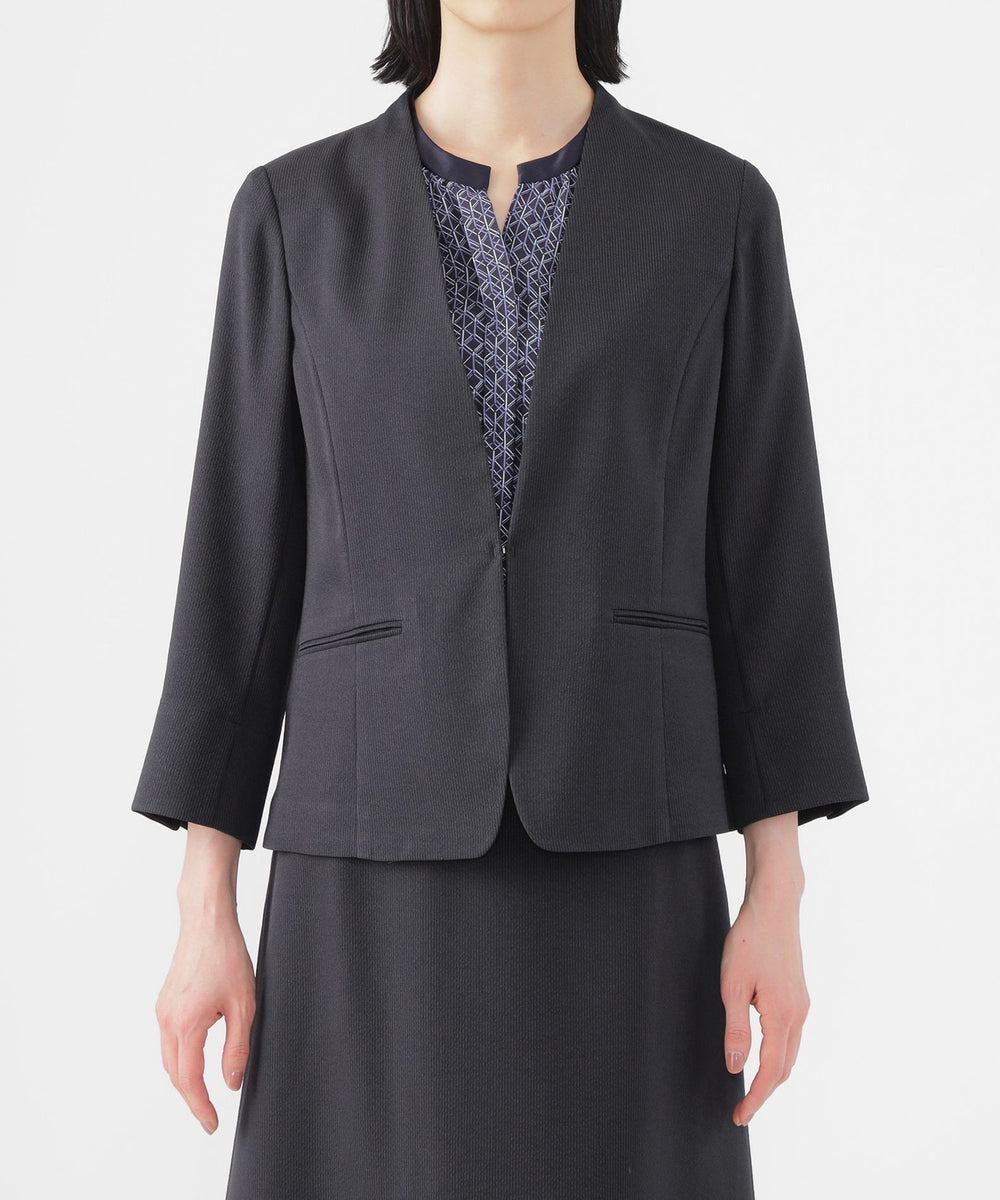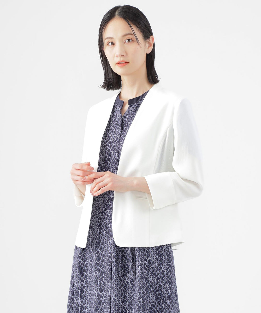 TRANS WORK 【美シリーズ】【UV対策】【着用しわ軽減】【ウォッシャブル】エアリーコードレーンノーカラージャケット ¥33,000税込