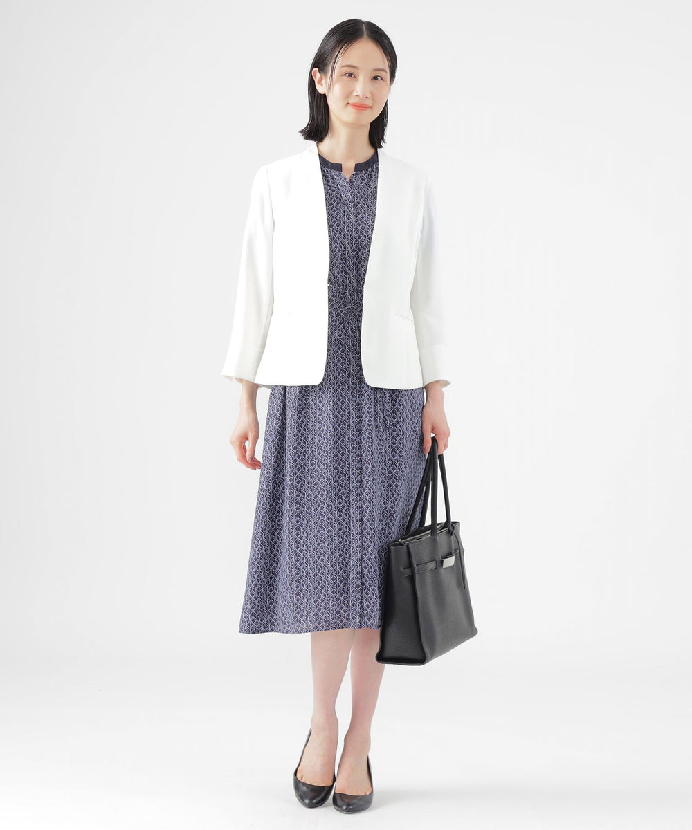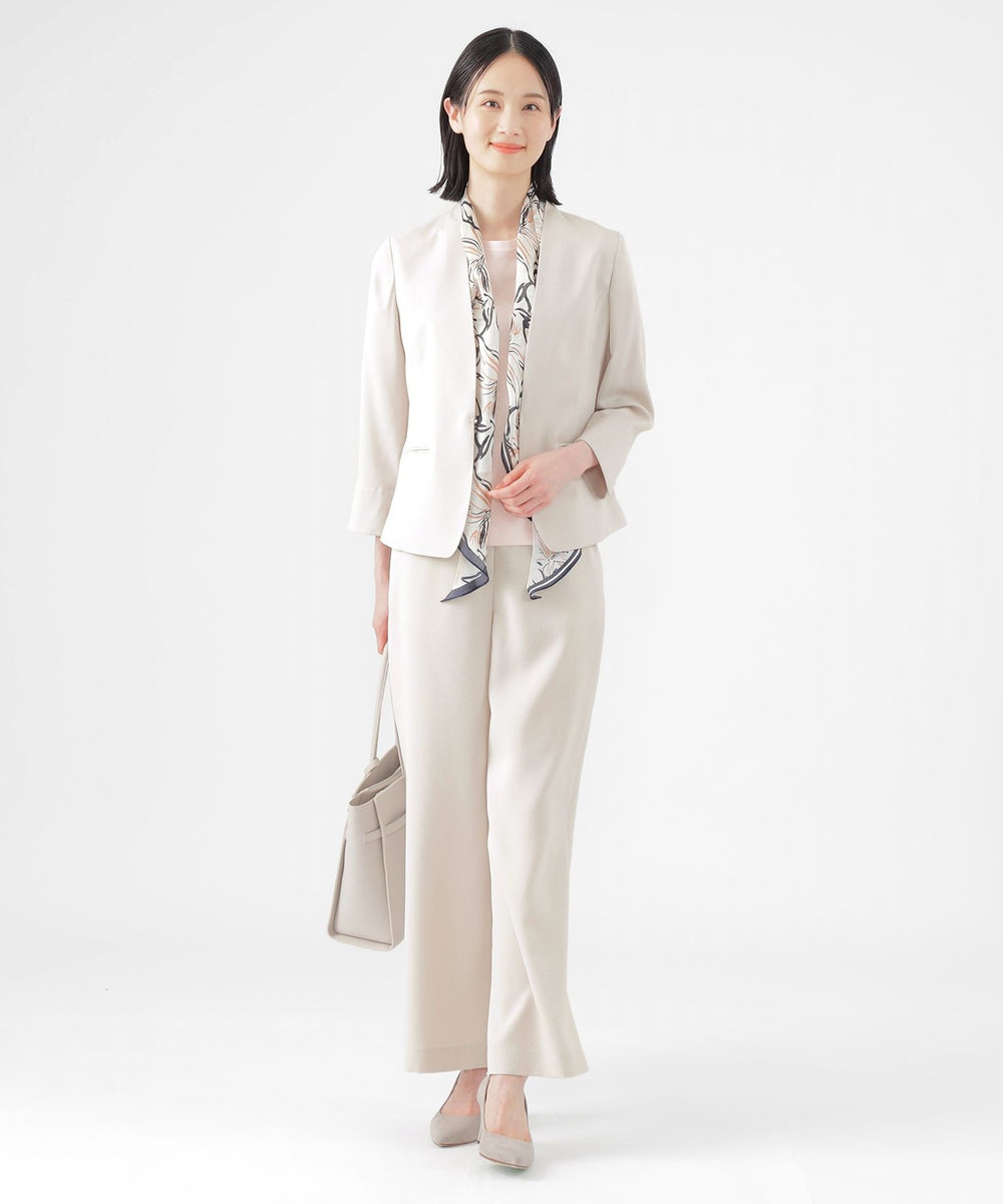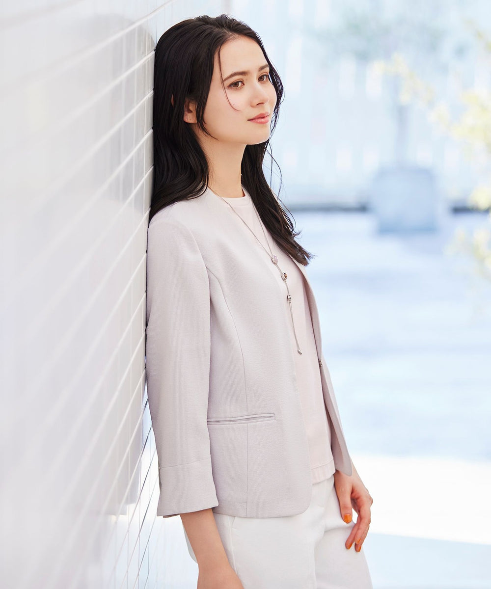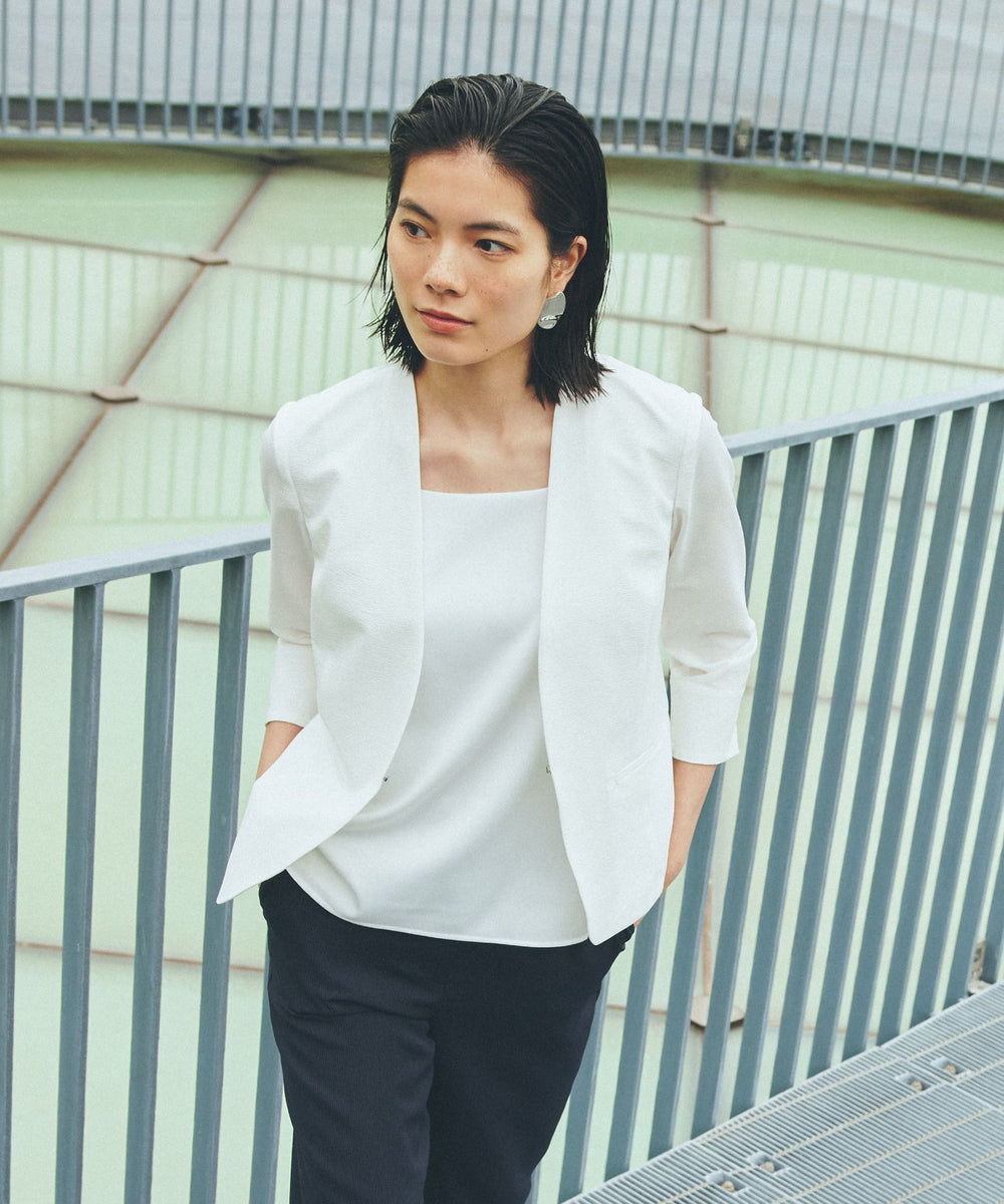 TRANS WORK 【美シリーズ】【UV対策】【着用しわ軽減】【ウォッシャブル】エアリーコードレーンノーカラージャケット ¥33,000税込