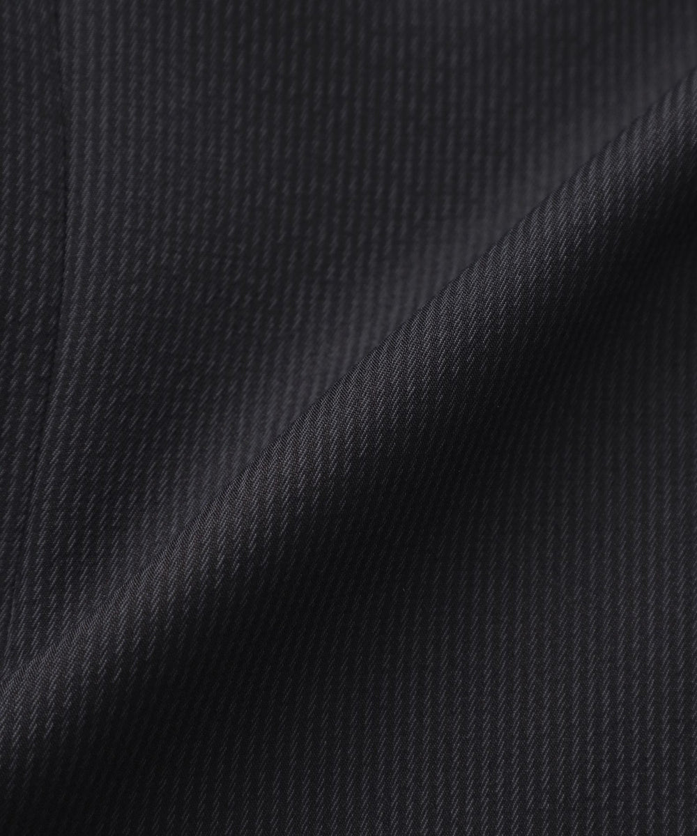 中空糸を使用した清涼感のある素材です。中空糸を使用しているので軽く、ドライなタッチが特徴です。ツイル組織ですが染色効果によってコードレーンのようにみせています。様々なテクニックを使用して、視覚的にも涼しげな素材に仕上げています。