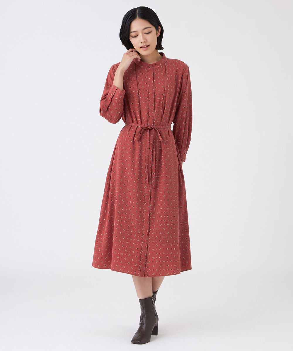 【ウォッシャブル】ジオメトリックプリントワンピース
