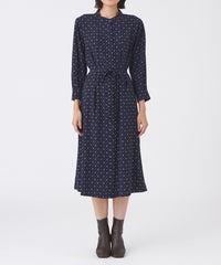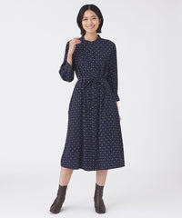 少し高めのバンドカラーがクラシカルな印象のシャツワンピースです。