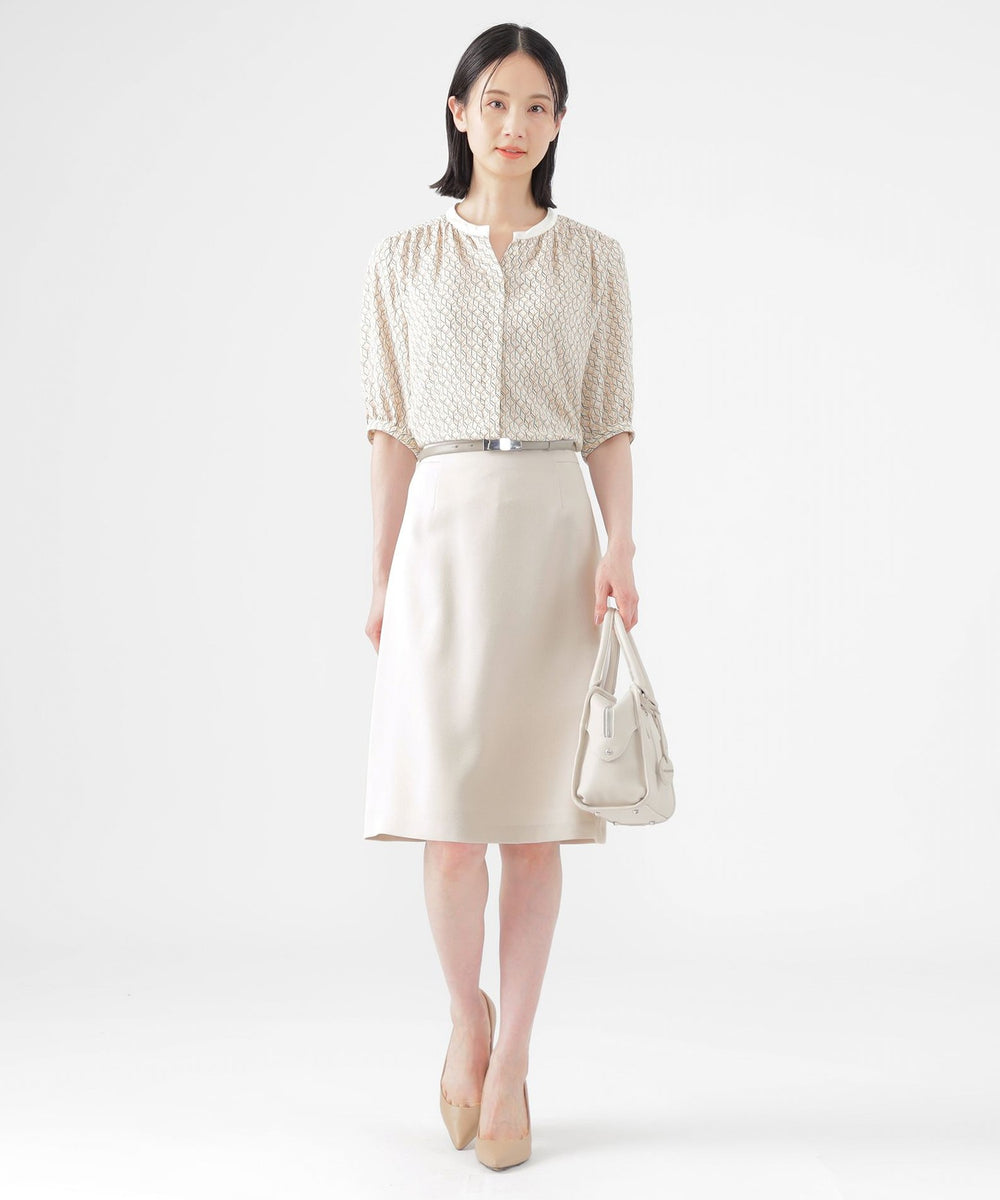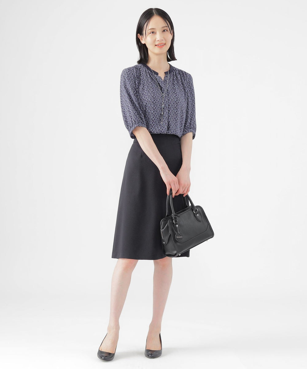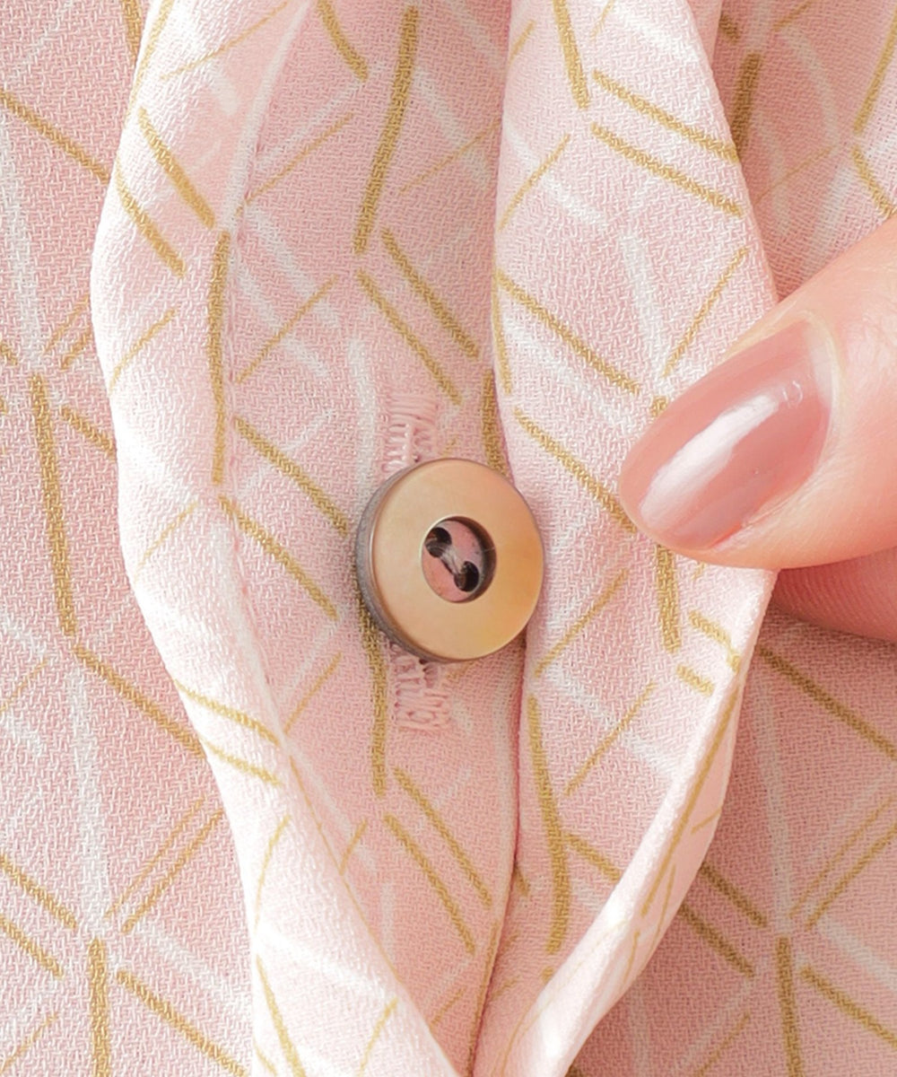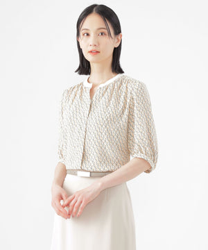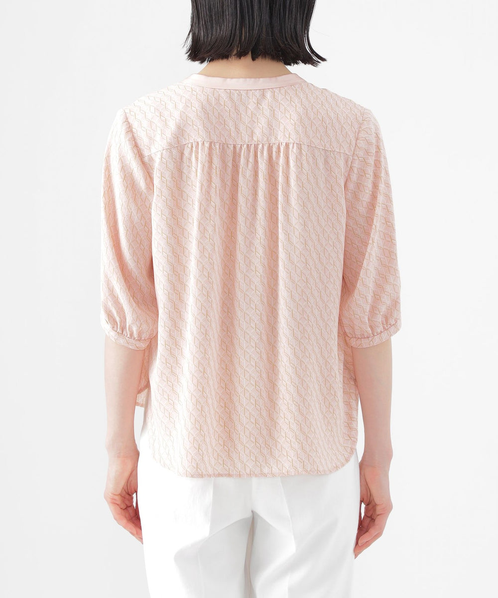 【UV対策】【ウォッシャブル】ラインキューブプリントキーネックブラウス
