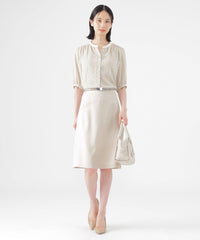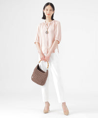 キーネックで襟ぐりにぬけ感のあるブラウスです。インナーとしても、1枚着としても、羽織としても着用でき、高い汎用性が特徴です。