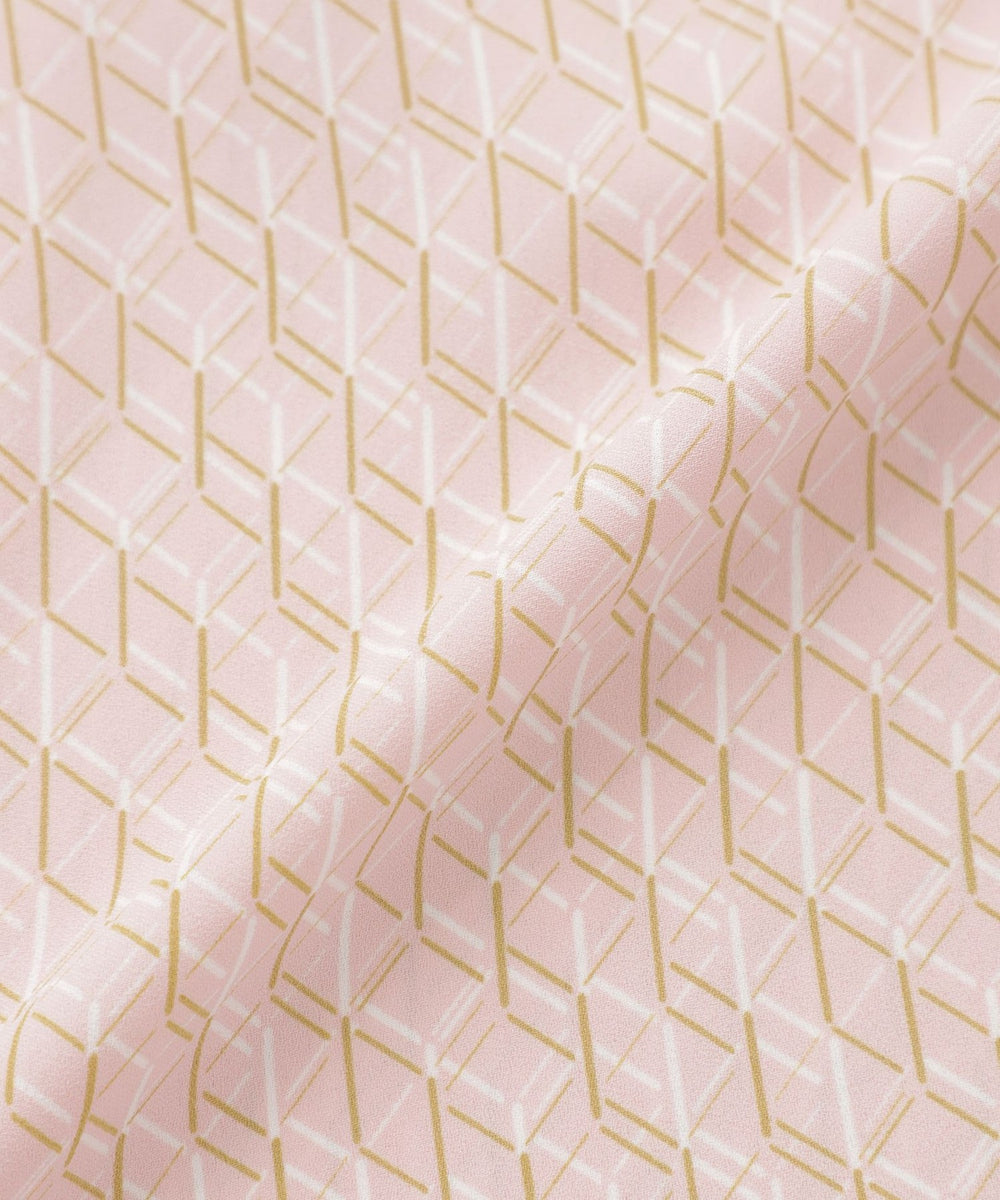 イギリス・ロンドンのTHE COLLECTIONというアトリエの柄です。線だけで構成されたシンプルな柄を3色で表現し、リズミカルな立体柄になっています。滑らかなサテン素材で、快適な着心地です。