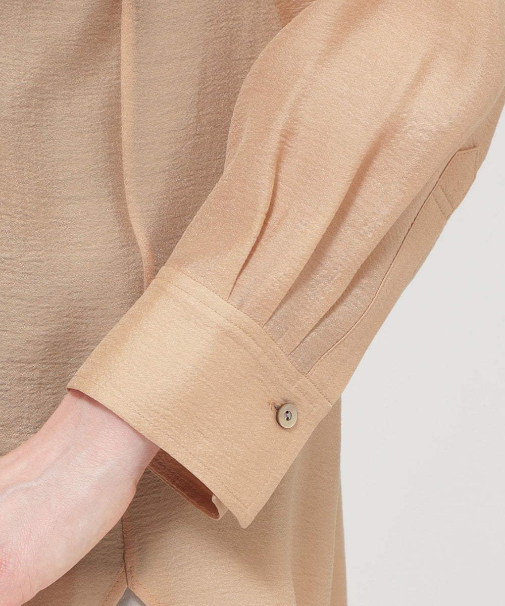 微光沢感があってお顔映りの良いカラーシャツです。軽く羽織れる便利なアイテムです。