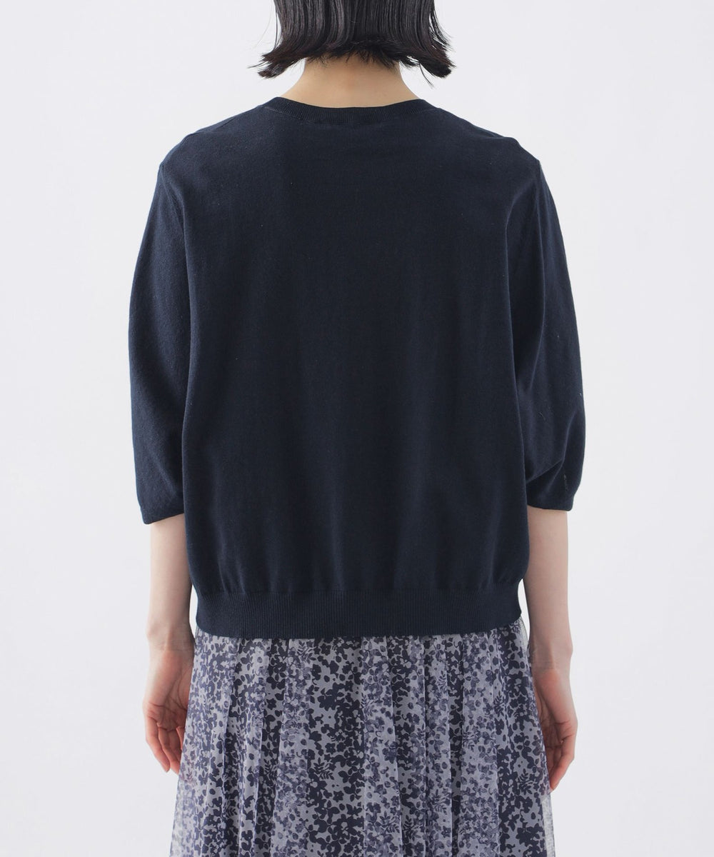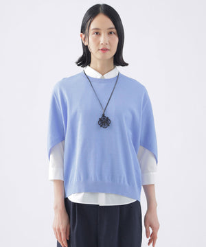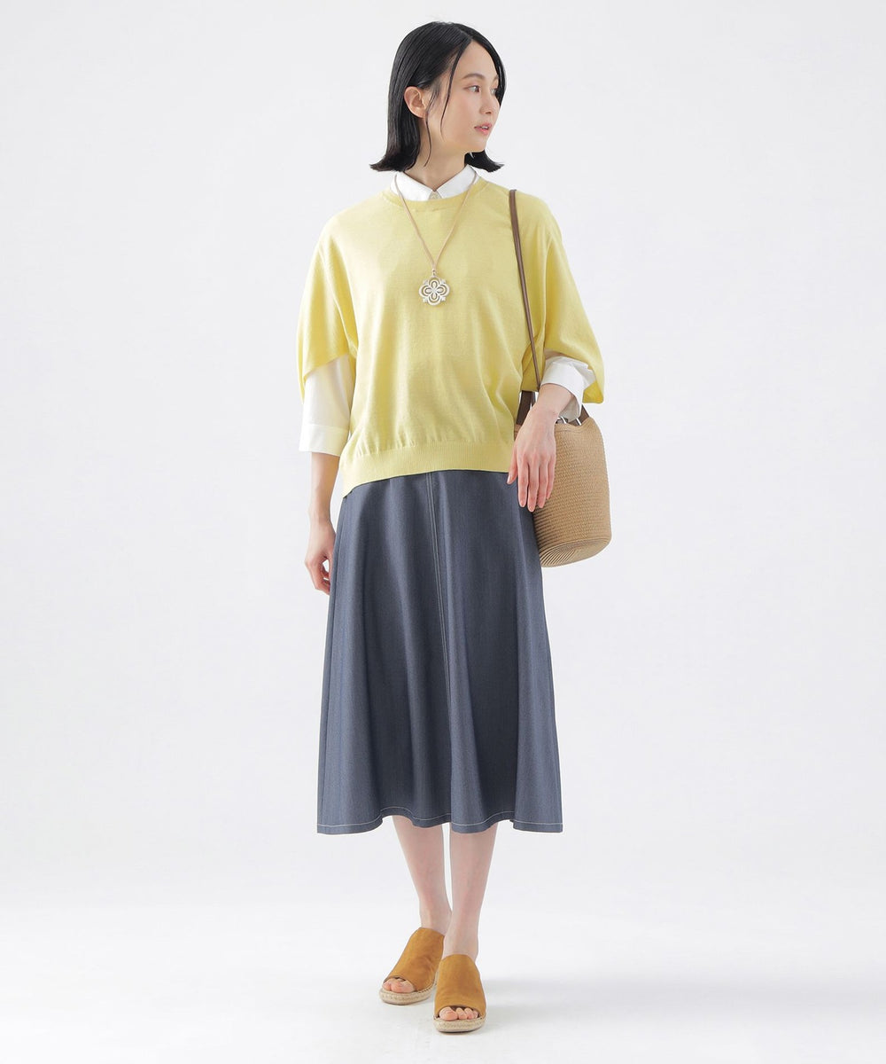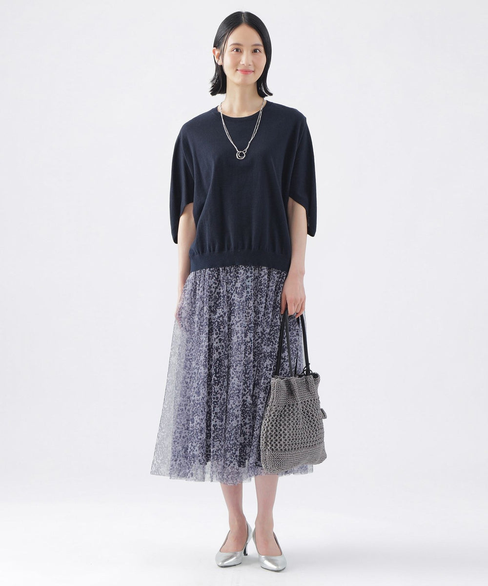 ラフな着心地とゆるさが可愛いニュアンスのある袖デザインがポイントで、抜け感のあるシルエットは大人のカジュアルスタイルにおすすめです。合わせるボトムもスカート、パンツどちらにも良く合い、着回し力抜群のトップス。中にシャツを重ねたレイヤードスタイルや、夏には1枚着としても汎用性の高さもポイントです。
