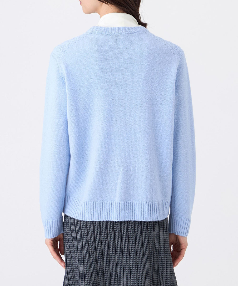 しなやかな膨らみ感と、軽やかな着心地が特徴で、ウールならではの風合いを楽しめます。使用している毛100%の糸は超極細のメリノウールから作られており、軽量で柔らかい手触りです。防縮加工が施されておりウォッシャブルなので、メンテナンスが便利です。