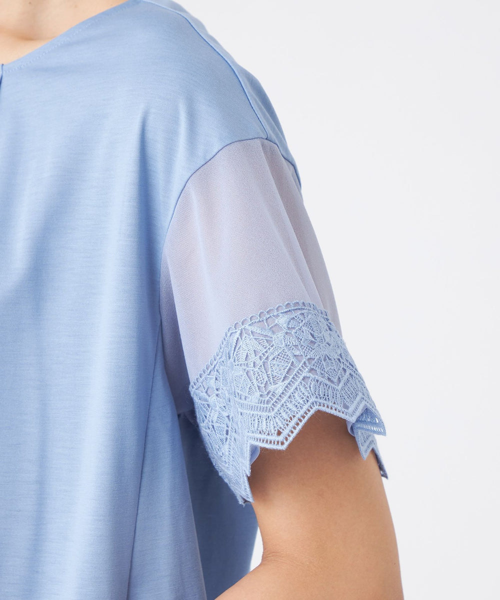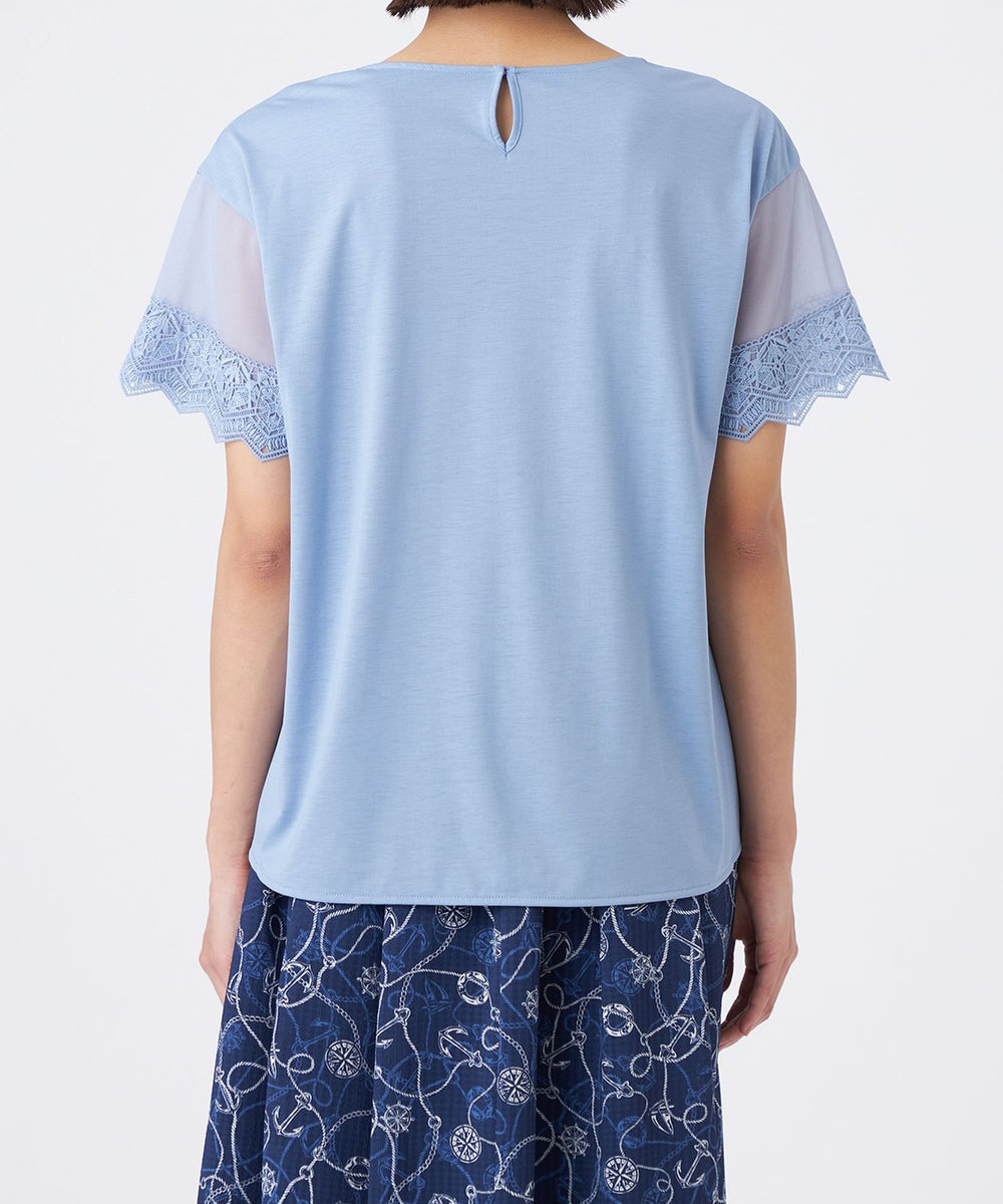 袖にレースを施したカットソープルオーバーです。