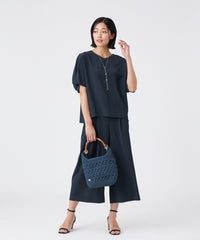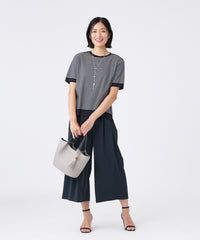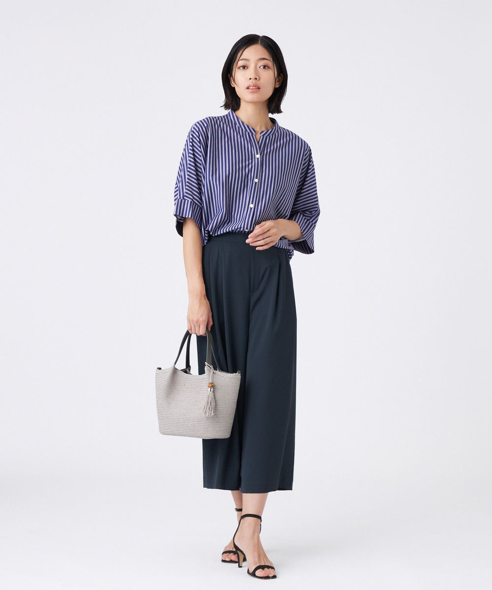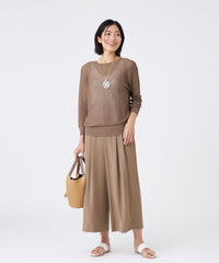 着脱しやすいウエストオールゴム仕様です。2タックのワイドシルエットで風通し良く快適な気心地です。同素材のブラウス(U1M22575)とのセットアップがおすすめです。