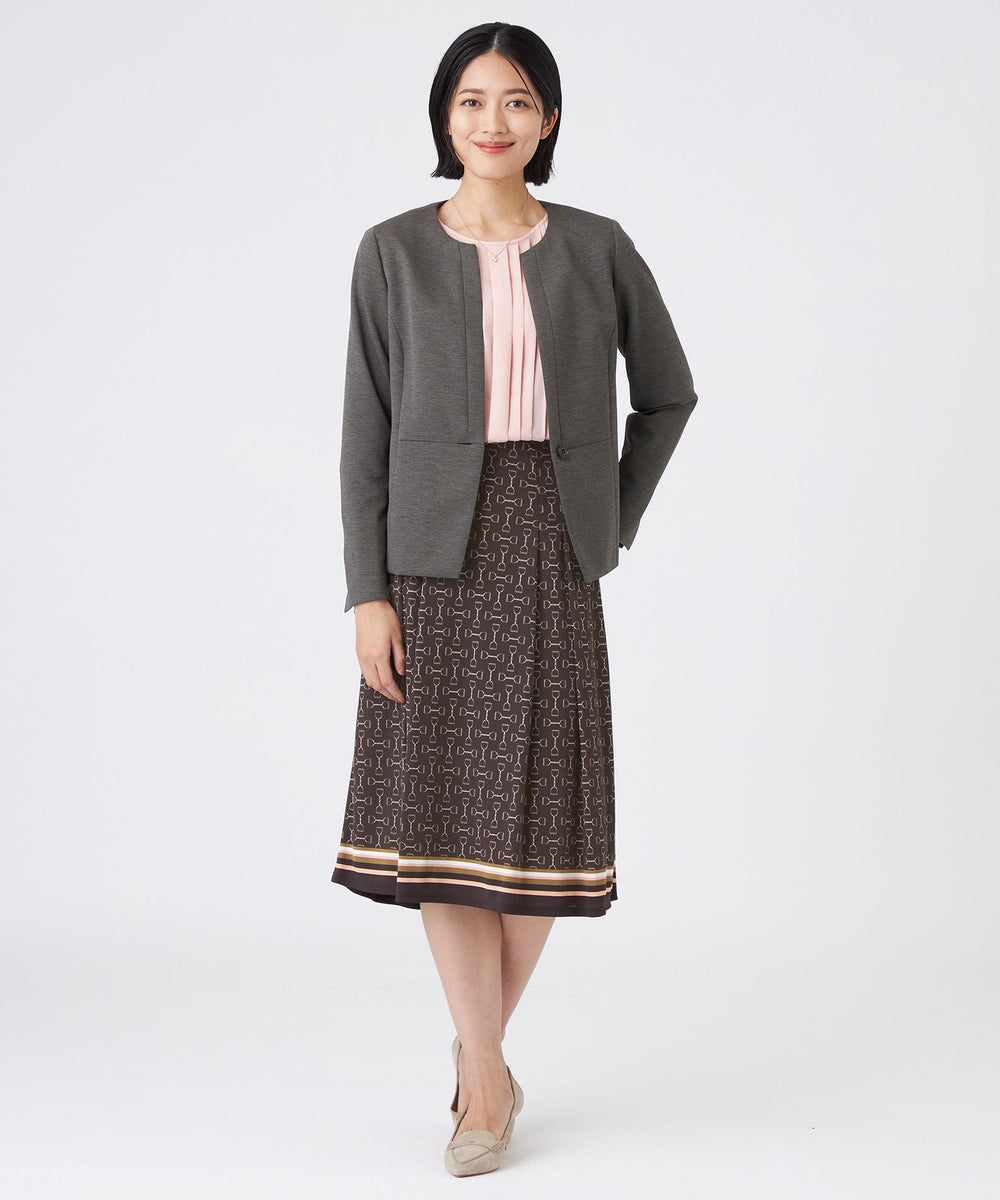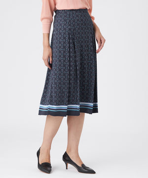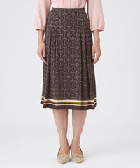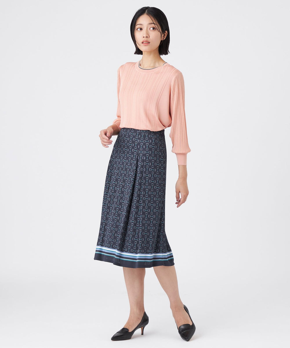 タックからのドレープが美しく、裾のボーダー柄がアクセントです。同素材のトップス(U1M10-626)とのセットアップでワンピース風にも着こなしいただけます。