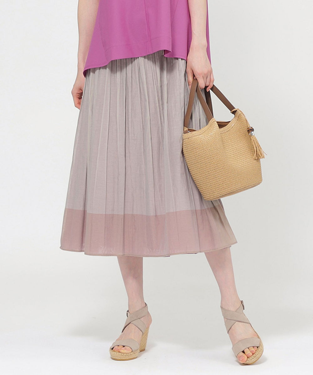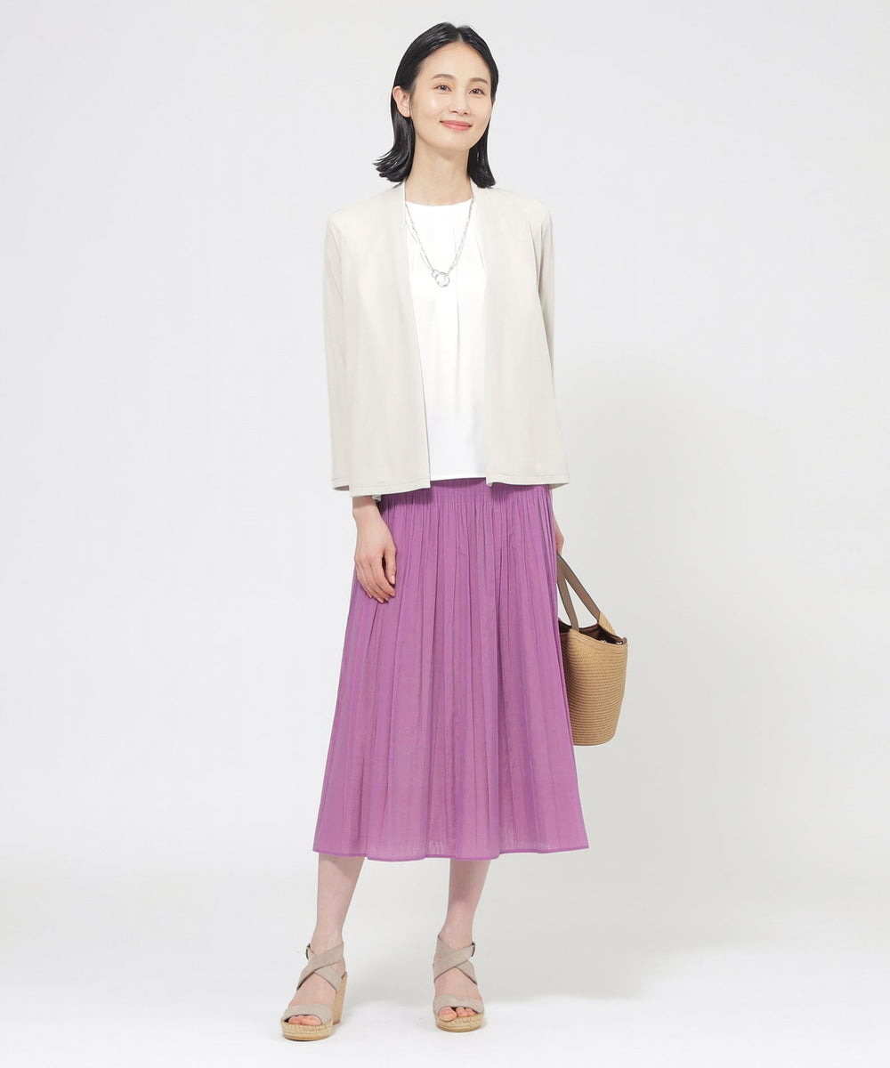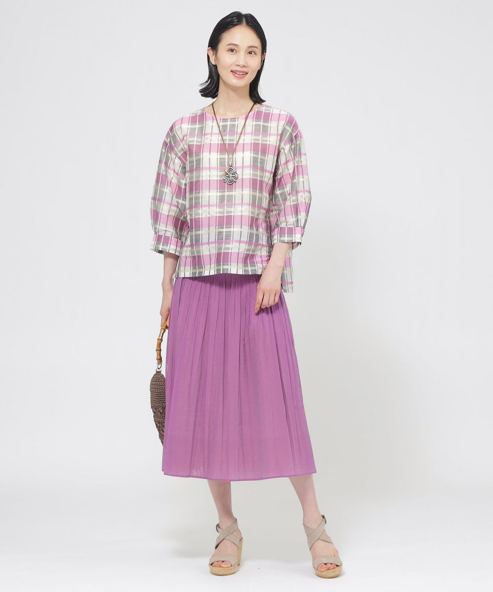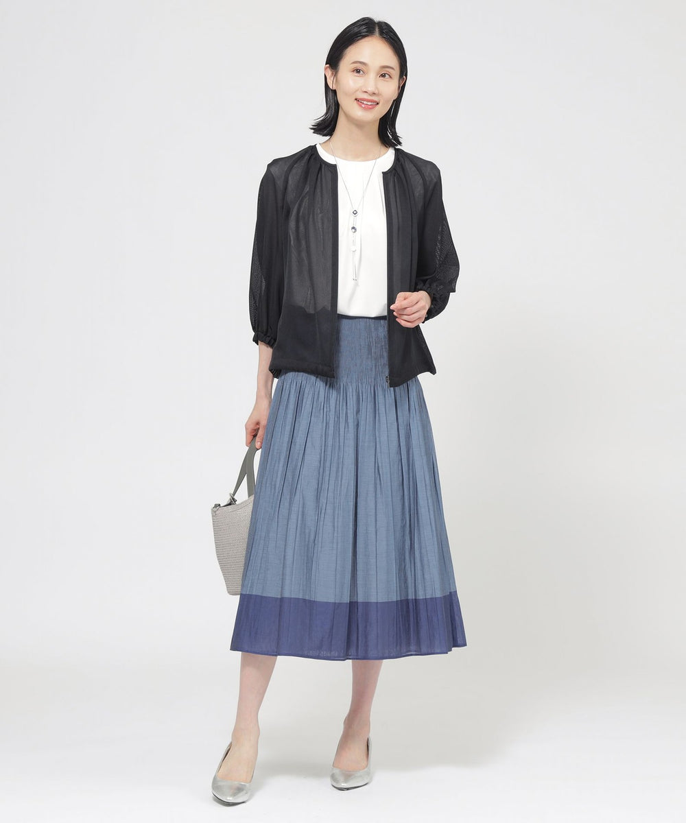 通気性がよく、清涼感のある素材を使用していますので、夏でも涼しげな印象です。ウエストはゴムなので、快適な着心地です。