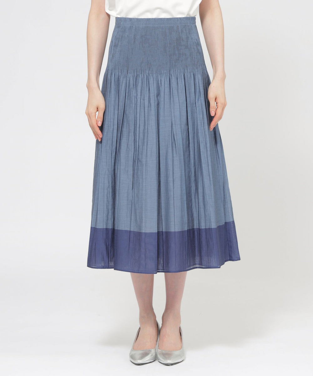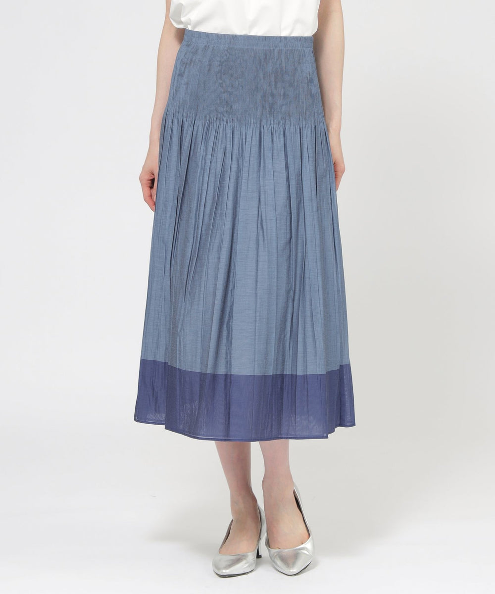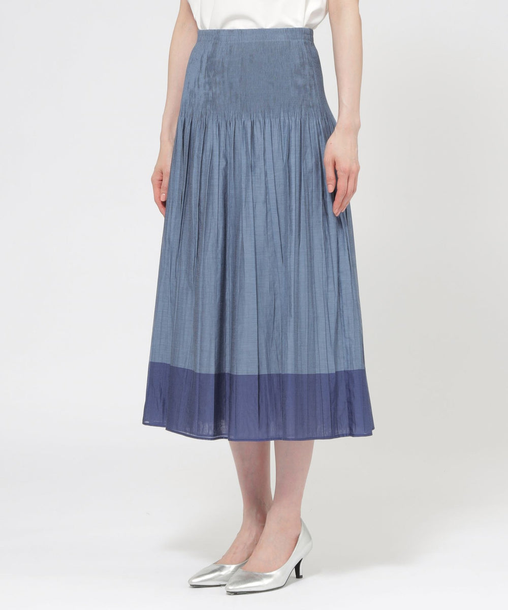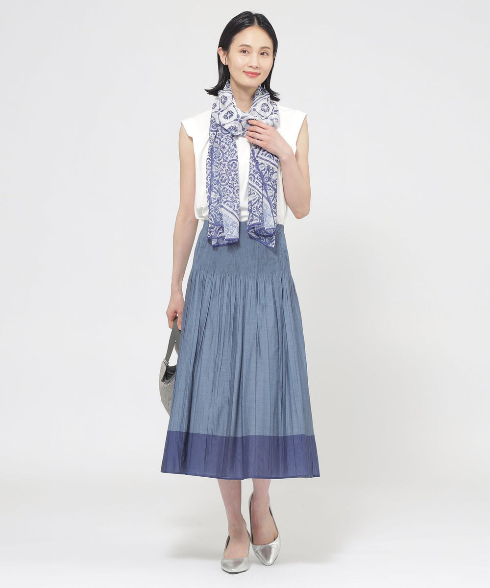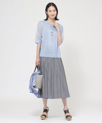 通気性がよく、清涼感のある素材を使用していますので、夏でも涼しげな印象です。ウエストはゴムなので、快適な着心地です。