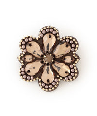 塗装できれいに色を付けたなみだ型のパーツを中心に、極小プラパールやボールチェーンを使って、きりっとした花型のフェルトブローチを作りました。