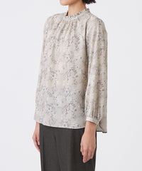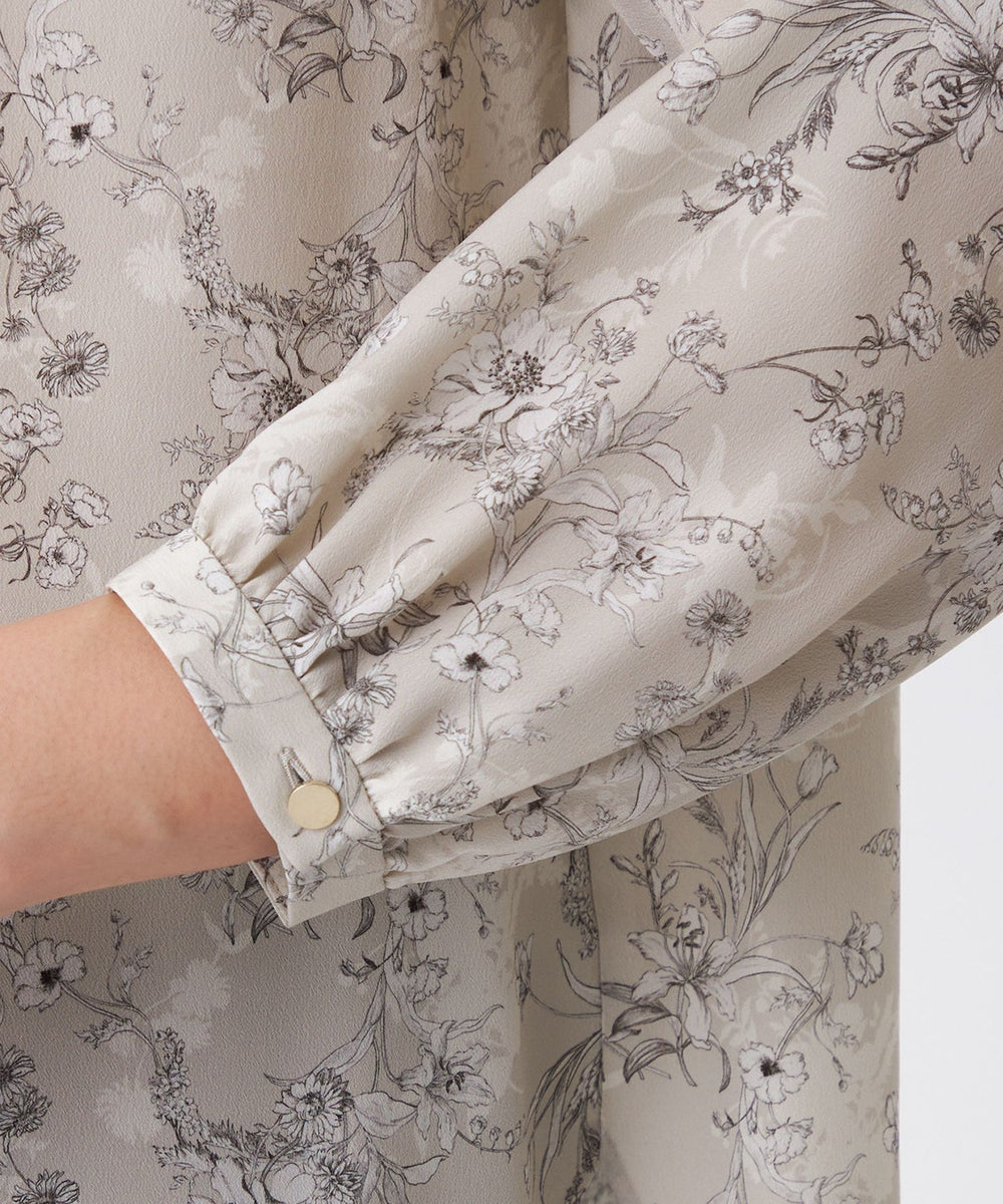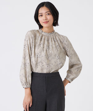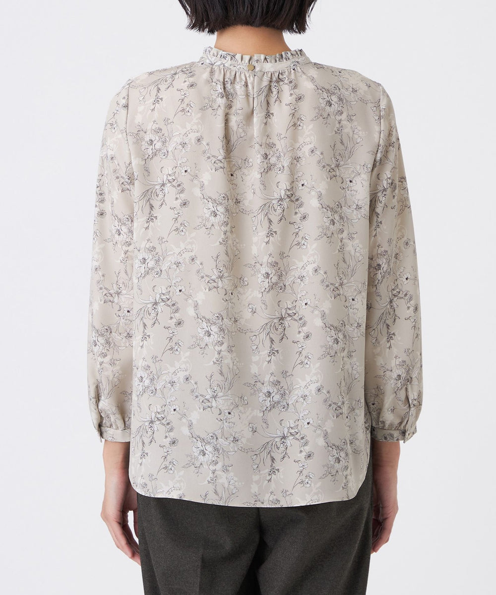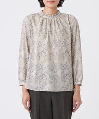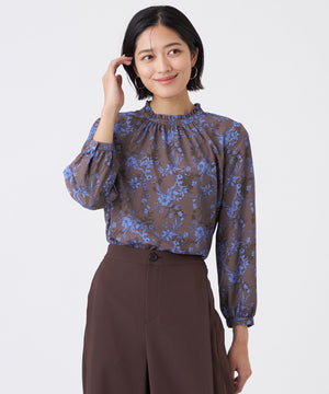 【L】【ウォッシャブル】エッチングフラワープリントブラウス
