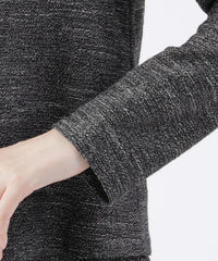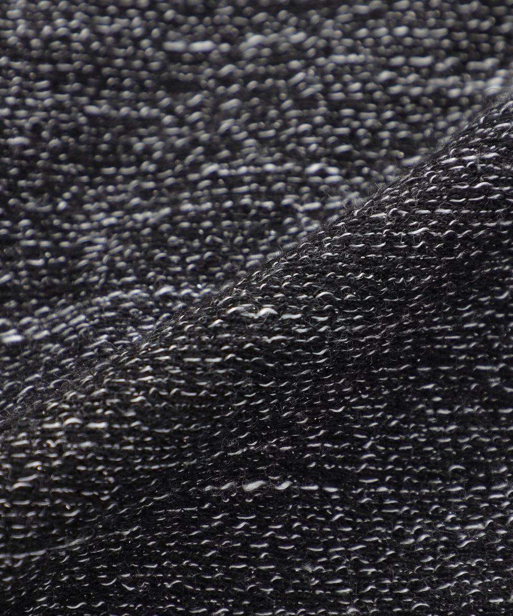 光沢感のあるキレイ目ジャージー素材を使用しています。ランダムなスラブ感があり、ラメを散りばめた上品な光沢が華やかな印象です。仕上げにタンブラー加工することでより一層生地に表情を出しながらソフトな風合いにし、ジャージーならではの伸縮性もあり快適な着心地です。