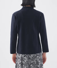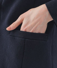 布帛ジャケットよりも軽い感覚で着用でき、カーディガンよりもきちんと感のある、優しい印象でデイリーにも着回せるニットジャケットです。ニットのファンクションも維持しつつ、 きっちりと目の詰まった編み地でジャケットの様なきちんと感もあわせ持っています。