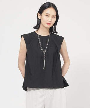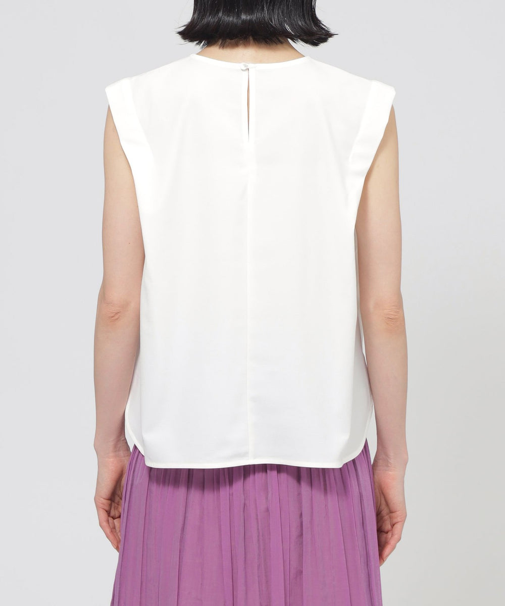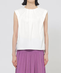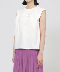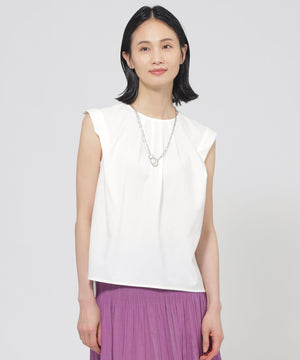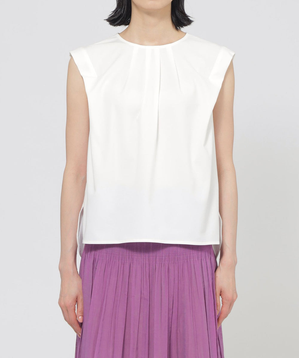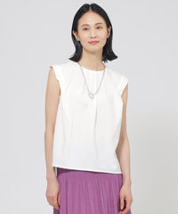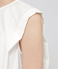 襟ぐりと肩に入ったタックデザインにより、立体的なフォルムが魅力的なカットソープルオーバーです。ショルダータックは二の腕カバーにも効果的なデザインです。