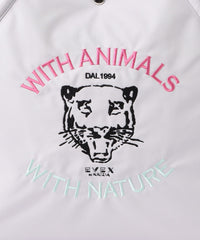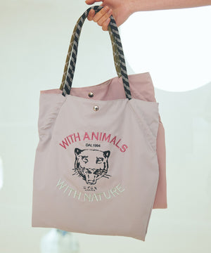 フロントに愛らしいアニマルの立体的な刺繍が施されたトートバッグです。