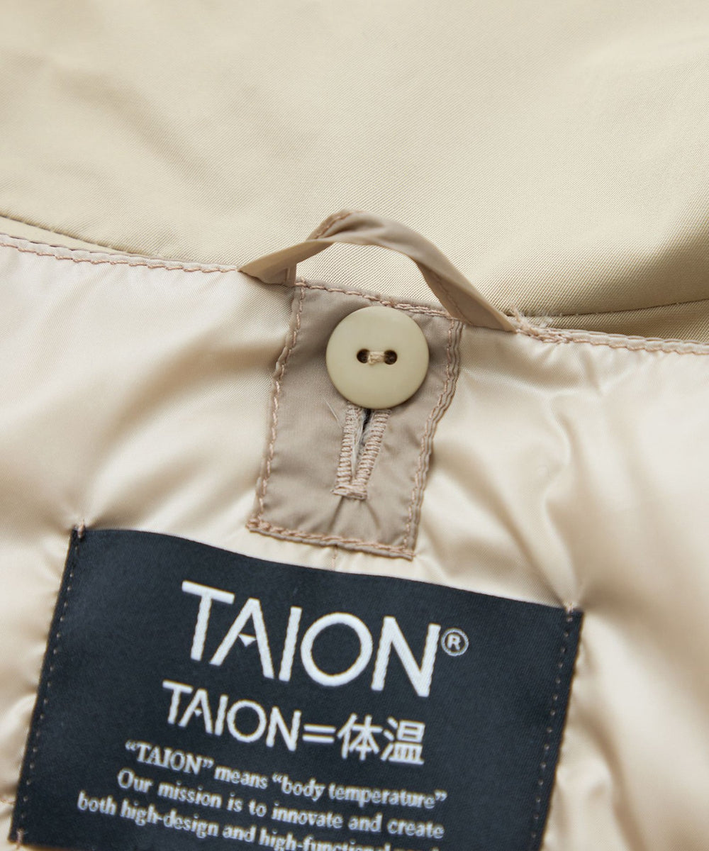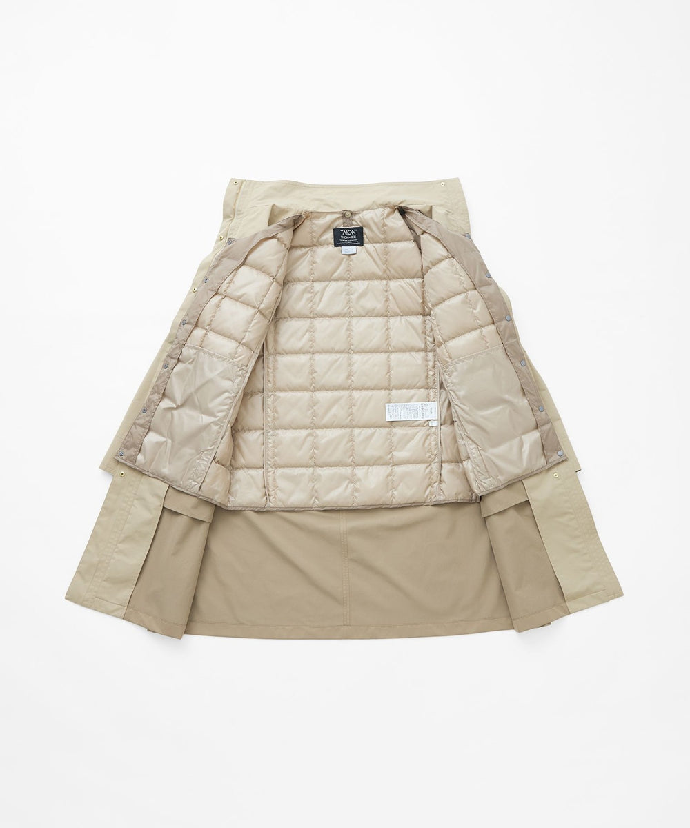 3シーズン活躍する、ダウンライナー付のウィングカラーコート。シャープに襟を立たせるとスタイリッシュに、襟を折るとステンカラー風の上品な印象で着用いただけます。ライナーにはTAIONのダウンベストをドッキング。優れた嵩高性のダウンを使用しているので軽くてあたたかく、インナーダウンとしてはもちろん、単品でも着用できる実用的な一枚です。