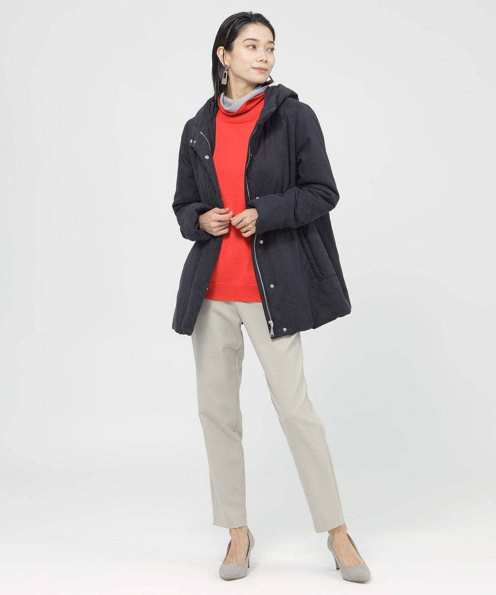 シャープな切り替えが際立つシンプルなシルエットのダウンコート。ボトムを選ばない、着まわしやすい丈に仕上げました。身頃には通常のダウンではなく、天然の羽毛を圧縮してシート状に加工した『THINDOWN』を使用。ダウン特有の膨らみやステッチが無くすっきりとした見た目で、ダウンの保温性を実現しています。