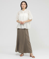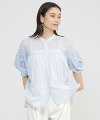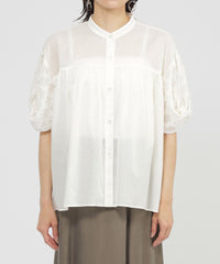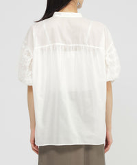 ツイストデザインのスリーブが特徴的な軽いブラウス。ソフトで肌触りが良く、透け感のある軽い風合いのローンなのでたっぷりギャザーを寄せて、動きのあるデザインにしました。前丈が短めなので、パンツと合わせてスッキリとしたコーディネートにしたり、袖が特徴的なので、ジレやジャンスカと合わせてもポイントになる、1枚持っておくと便利なアイテムです。