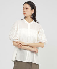 【SANYO Style EDITION掲載】【ウォッシャブル】タイルジャカードコンビブラウス