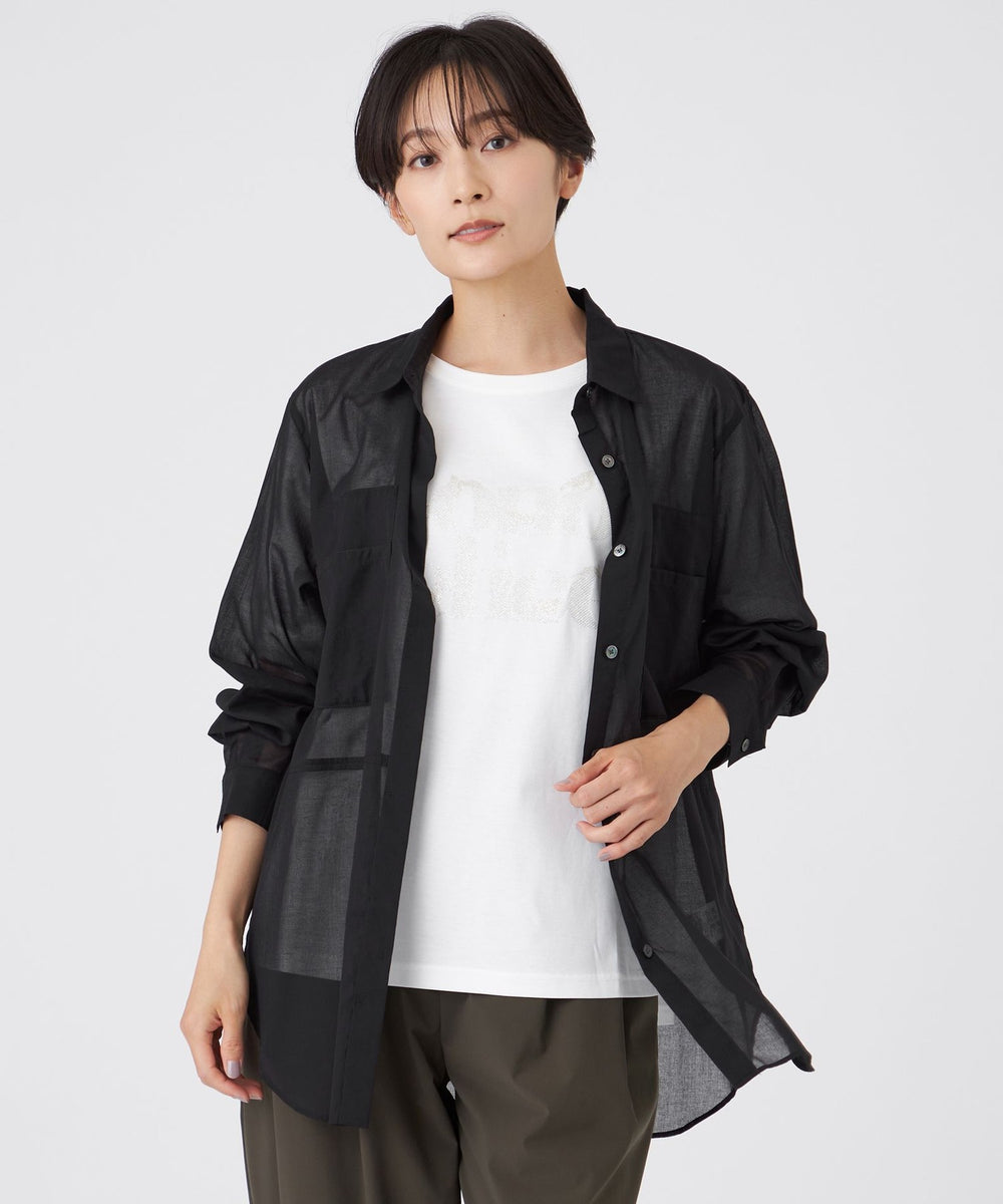 【接触冷感】【ウォッシャブル】シアーボイルロングシャツ