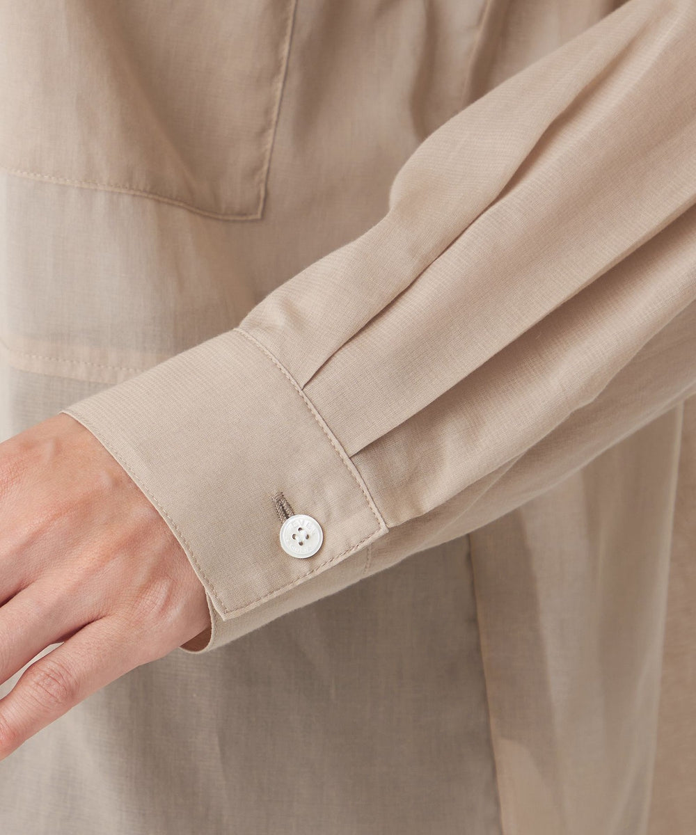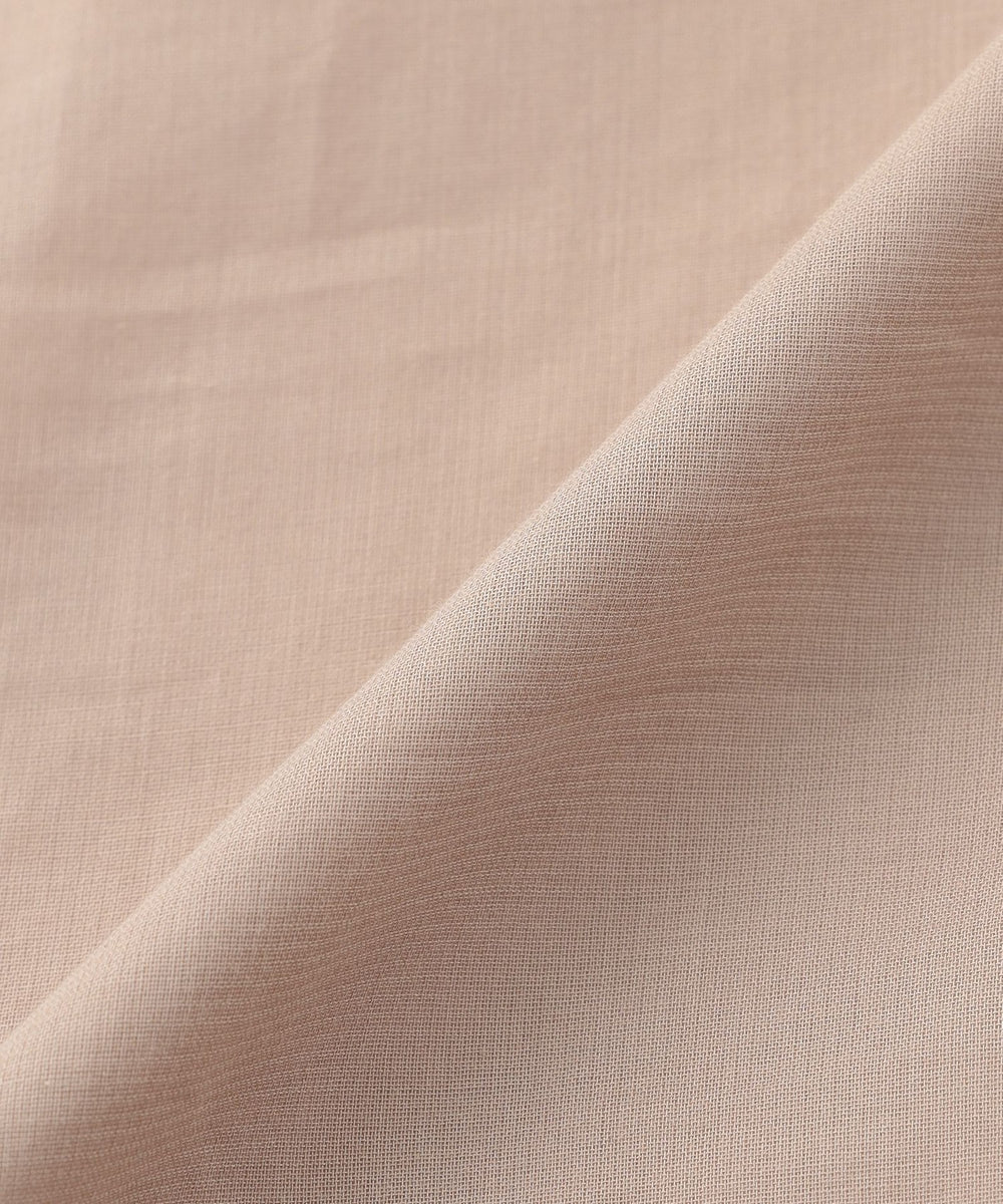 綿ボイルローン素材です。透けるほど薄手の生地ですが、強撚の糸を使っていることで、張りとコシがあるのが特徴。 かたくしまったシャリ感やナチュラルな色味が天然素材のような表情です。 サラサラとした手触りで、接触冷感機能付きです。