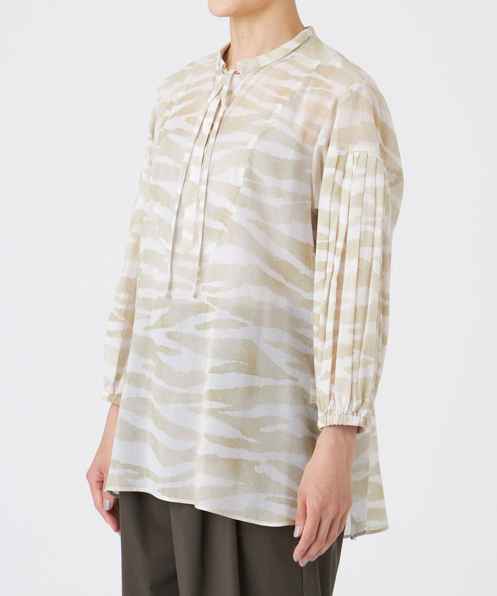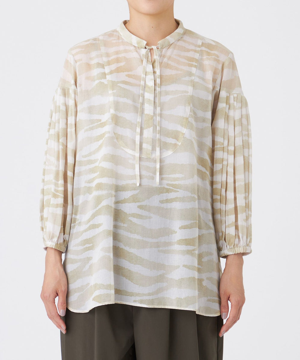 【接触冷感】【ウォシャブル】シアーボイルゼブラプルオーバーブラウス