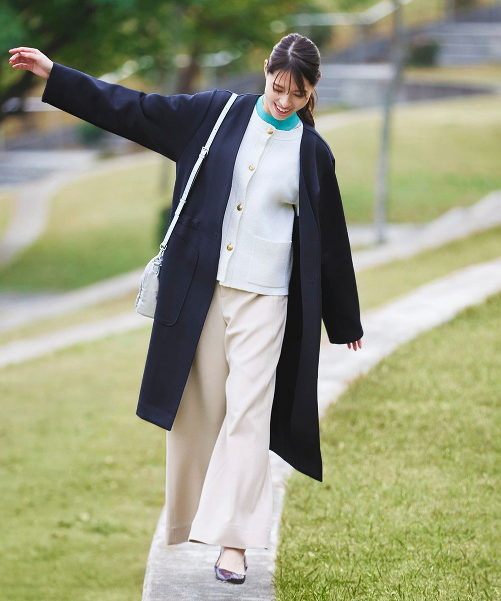 衿と裾、袖口のポイントカラー使いが、おしゃれで主役級の一枚です。ピタッとしすぎず一枚でも着やすいサイズ感です。インナーとして着てもネックの配色がアクセントに。プレーンなデザインなのでトップス使いもインナー使いもできる優秀アイテムで幅広い場面で活躍してくれます。