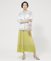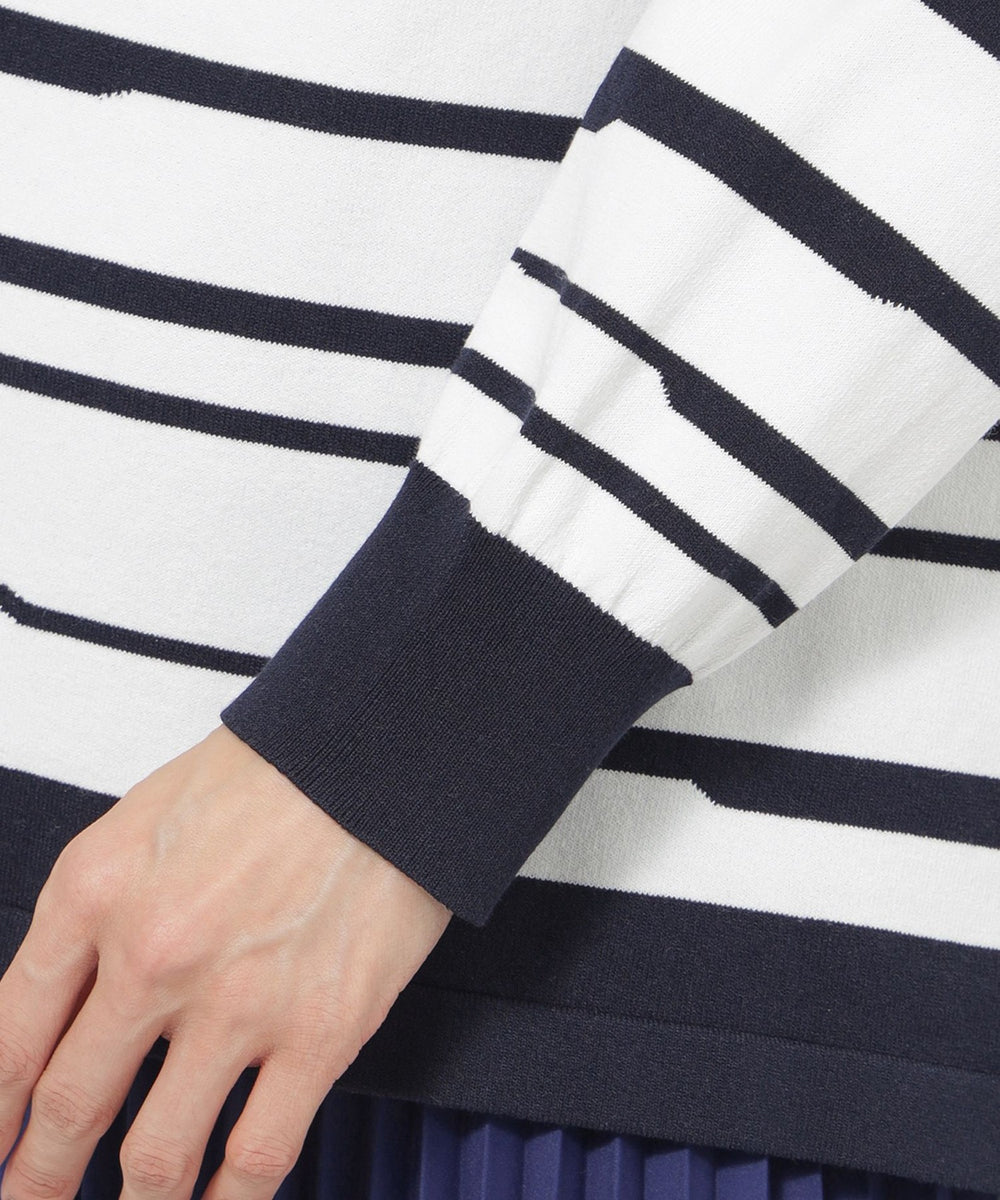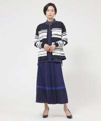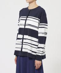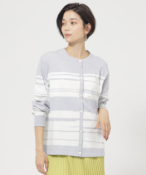 ランダムでシャープな印象の変形ボーダーが目を引く大人なニットカーディガンです。使いやすいベーシックなサイズ感で、ジャケットやスプリングコートの中にも着ていただけます。羽織として使うのはもちろん、釦を閉めてトップス風に着用するのもおすすめです。
