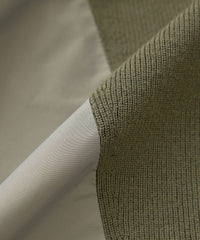 布帛部分には、しなやかなポリエステルを使用した高密度先染メモリータフタ素材を使用。適度な張り感と上品な印象を与える繊細な光沢感が特徴で、立体的なボリューム感を演出できます。ニット部分には、レーヨンポリエステルのストレッチ糸を使用。ソフトで肌触りが良く、長い期間活躍する素材感です。細番ストレッチ糸なので、肉感を感じさせない軽量さも特徴の一つ。