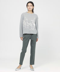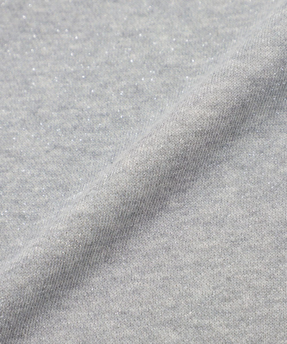 ラメ糸のはいった裏毛素材を使用しました。程よくきらめくラメが今年らしくスタイリングのアクセントになります。肌触りも良く、身体になじむ程良い厚みの生地に仕上げました。